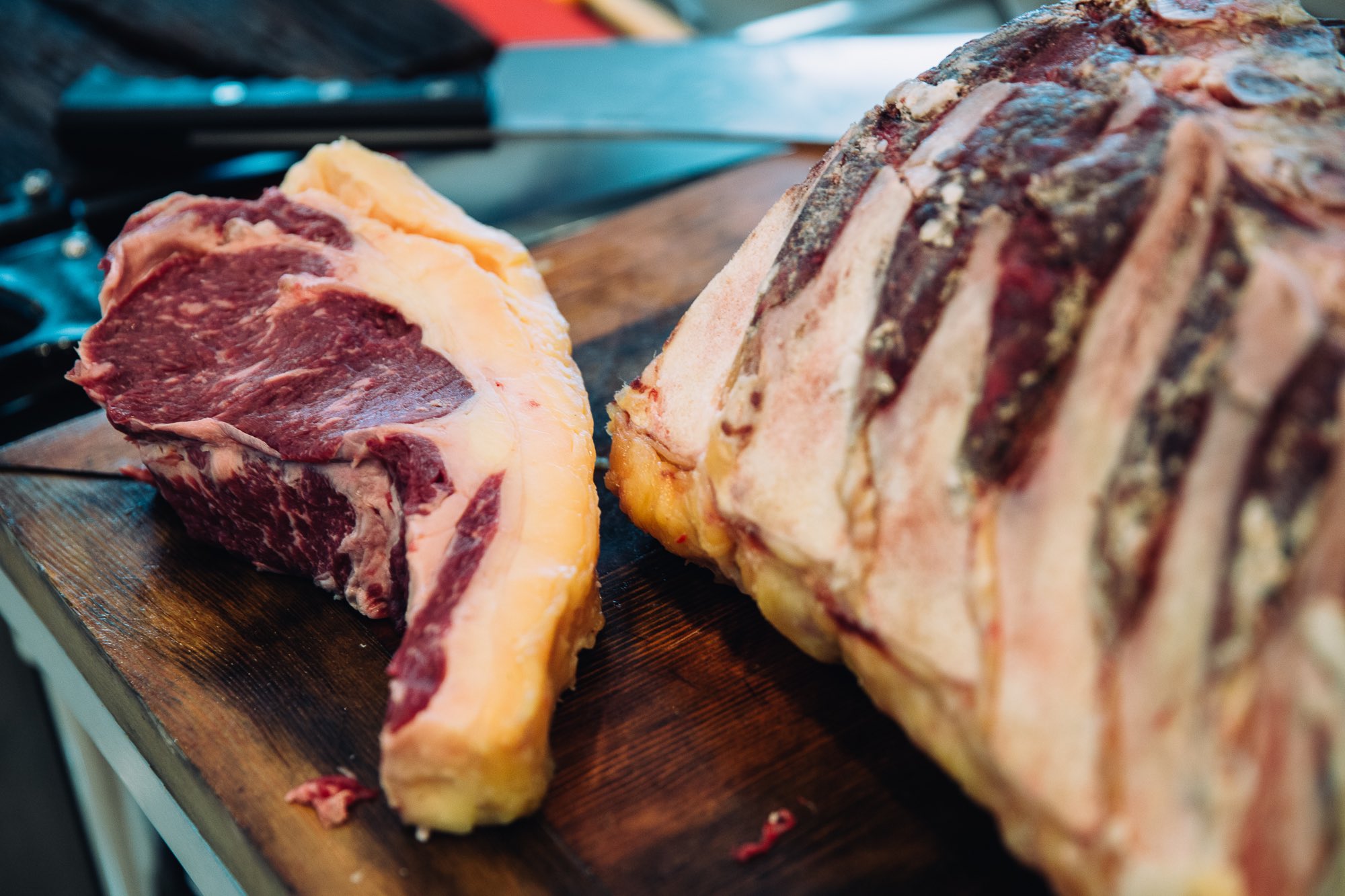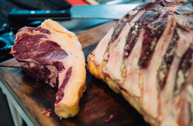 Cuisine Glass-fronted dry-ageing cabinets showcase the directly sourced traditional cuts of artisanal farmed Italian and Spanish meats. Menu highlights include the dry-aged beef cuts from the legendary Chianina breed of Tuscany and the Rubia Gallega breed from NW Spain. Both beef and pork meats are cooked over aromatic cherry wood imported from Italy, while Mediterranean-caught fish are cooked over Italian olive wood. Dry-cured antipasti are a specialty at il Fumo – highlighted by Italian estate-cured prosciutto; beef hams from Spain and Italy; and dry-cured Basque region Txistorra sausage.