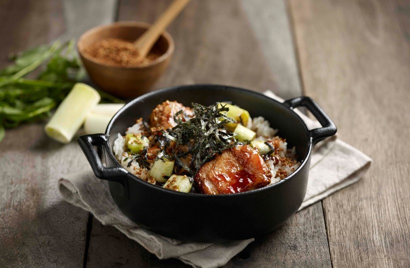 • Chicken YAKI - pan-seared chicken thigh, Nippon sauce glaze, grilled leek & bacon