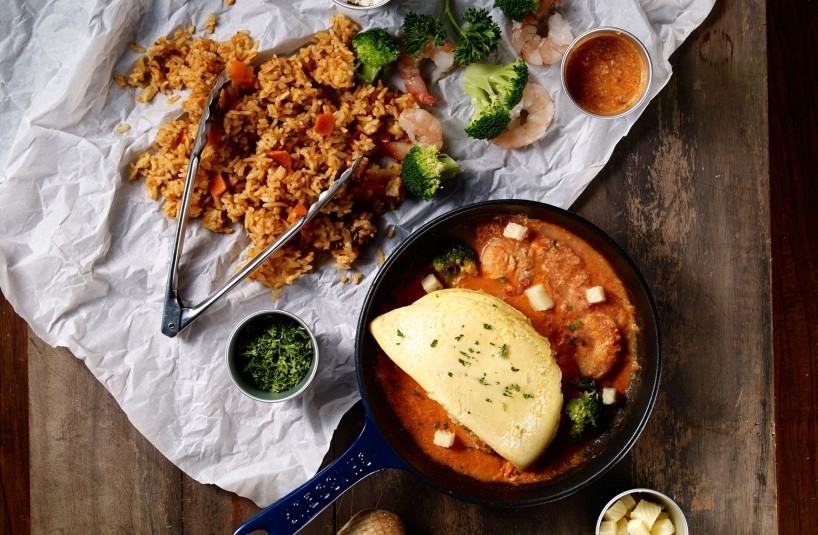 • Riz Au Curry - rice, Japanese curry, pork frankfurters, broccoli, cheese & egg