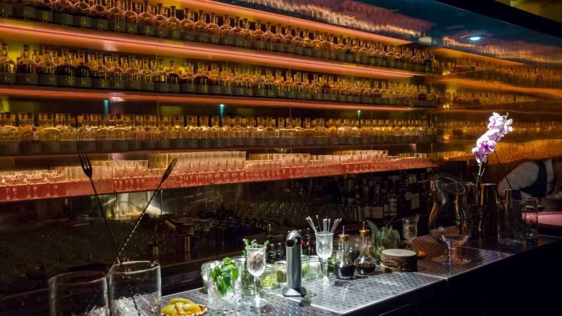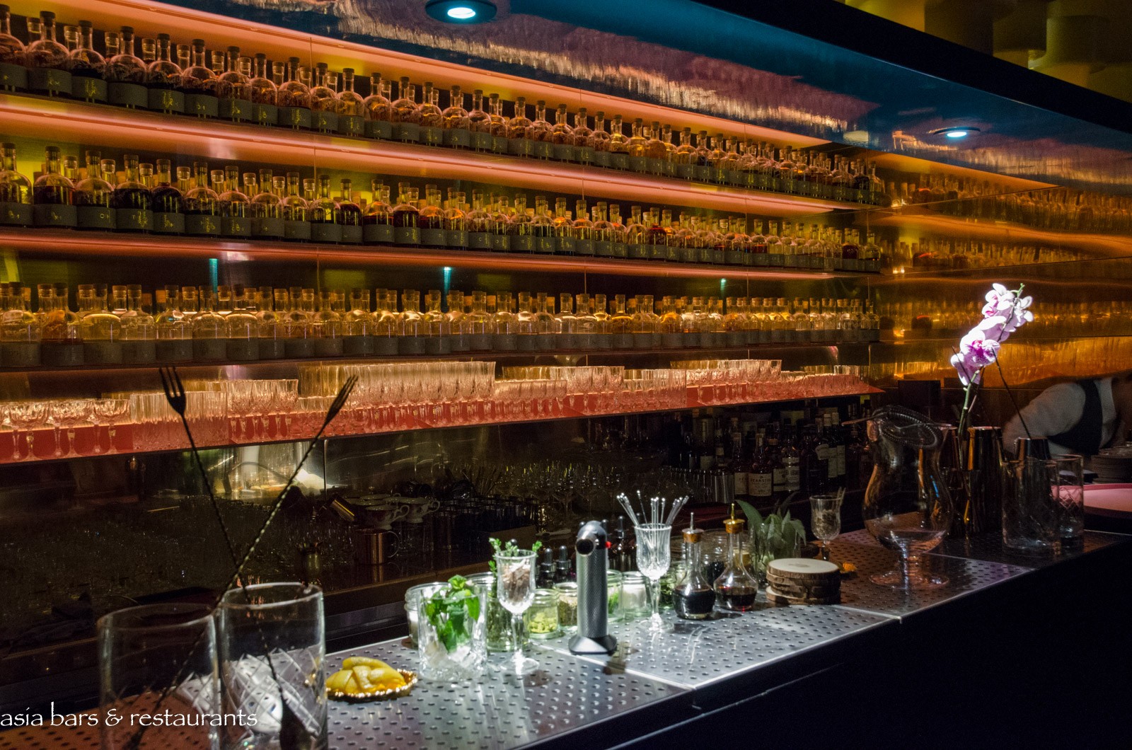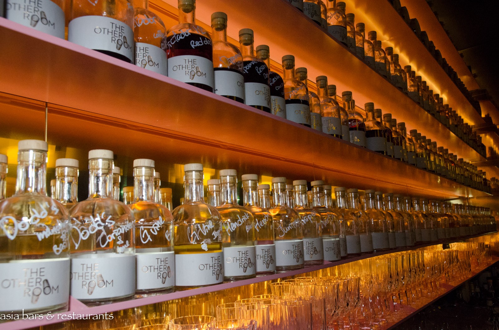 Design Dimly lit and concealed away from the hotel lobby behind an unmarked doorway and heavy dark curtains, the design of The Other Room references the hidden drinking dens of the Prohibition-era, updated with a custom designed interior decor that exudes an understated luxe. The long black marble bar dominates attention, with the impressive array of house-labelled bottles, and small oak casks showcased on full-length shelves behind the bar. Comfortable seating – simple yet elegant settings for small groups – caters for around 30 guests only. Centrepiece of the space is a over-size hand-made brass sculpture inspired by the classic Boston cocktail shaker.