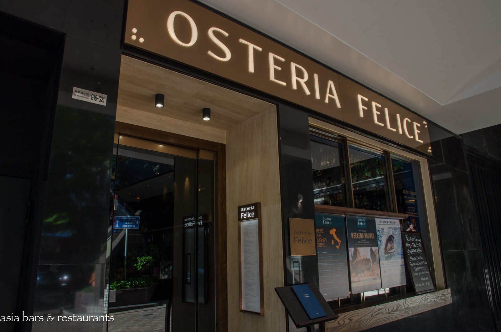 Opened in November 2015, Osteria Felice (Italian for happy) has been well received as a convenient destination in Central for popular Italian osteria-style cuisine – think Neapolitan pizzas, pastas, specialty cheeses and grill dishes – and a well-stocked bar serving an impressive variety of classic Italian cocktails, wines, and daily antipasti. Relaxed dining in the restaurant is complemented by the adjacent cocktail lounge and bar where experienced bartenders specialise in Italian classics like martinis, bellinis, and negronis. Operated by the well-respected Epicurean Group, the focus at Osteria Felice is on classic Italian fare and cocktails served in a friendly and sociable environment. The daily themed Felice Hour (happy hour) promotions with attractive deals on drinks and complimentary antipasti draw a vibrant after-work crowd.
