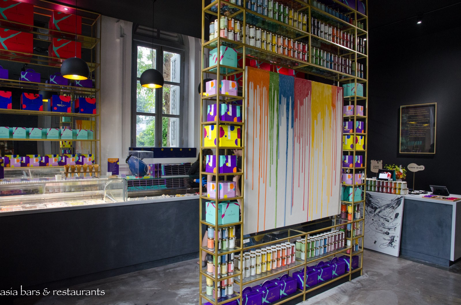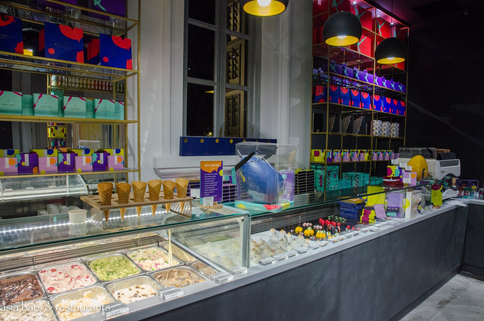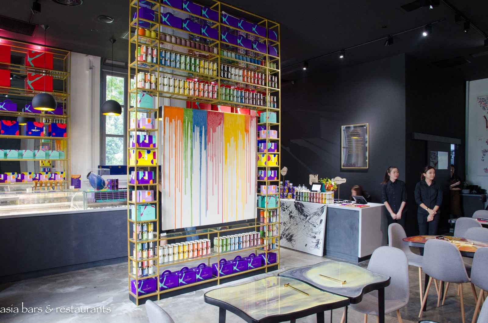 Design Beyond the imposing colonial-era facade, the high-ceilinged restaurant interior features a pared-back contemporary decor with shades of grey and white providing a neutral backdrop to the colourful sweets displays and art installations. Comfortably spaced freeform dining tables reference the original 2am:dessertbar decor, while a 6-seat dining counter offers an interactive experience with the chefs as they prepare desserts.