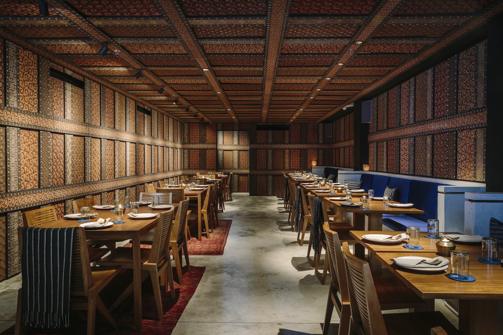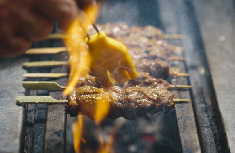 Kaum Kitchen & Dining   At Kaum (Indonesian for tribe) guests can select between two distinct environments – communal dining at the Kaum Kitchen with a long teak table and bench seats spanning the breadth of the pared-back space, while a row of counter seats offer up-close interaction with the open-kitchen. While at the adjacent Kaum Dining, the evocative teak décor and intimate table settings offer a more sophisticated experience for enjoying the authentic Indonesian culinary specialties. Meticulously researched, the menu offers a culinary journey through the traditional cooking techniques and local flavours of the Indonesian archipelago. Familiar dishes include sate and guling (a must-try is the Babi Guling – the famous Balinese dish of pit-roasted suckling pig) are cooked on open-fire bamboo and lava stone grills, while other notable dishes include the spicy sambal relishes, and the slow-cooked stews of the rendang method such as Rendang Daging Sapi with beef, red chillies, coconut milk and spices.