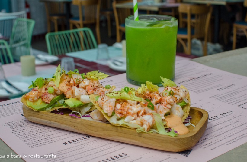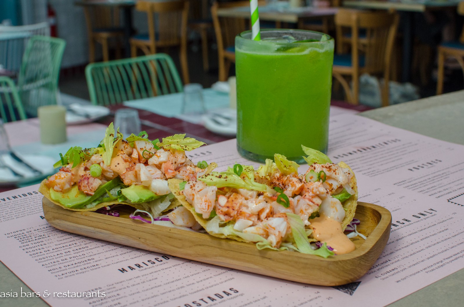 Cuisine The comprehensive menu is built around familiar Mexican fare like Tostadas, Quesadillas, Tacos, and Ensaladas. Reimagined dishes embody the essence of authentic Mexican contemporary cooking while enhanced with quality ingredients prepared in creative ways. Standout dishes that showcase the modern cuisine include the Langosta Tostada with lobster, avocado, celery hearts and spring onions; and the Tiayuda – a Mexican flatbread with 3-month air-dried wagyu, black bean hummus, queso Oaxaca, and peppery rocket. A lunch menu offers selections of Tortas – a quintessential Mexican street food typified by the El Cubano – a hot sandwich of slow-roasted pork, smoked bacon, jalapeno mustard, Swiss cheese, lettuce, and pickles.