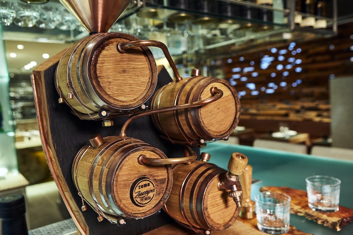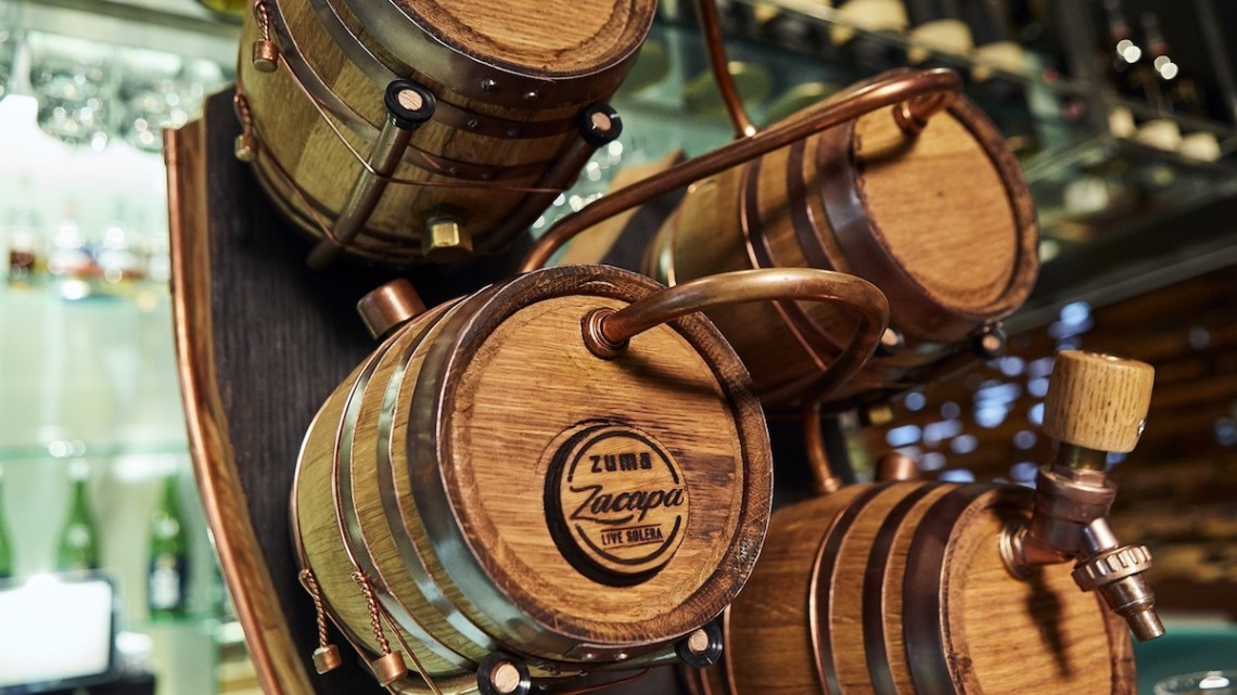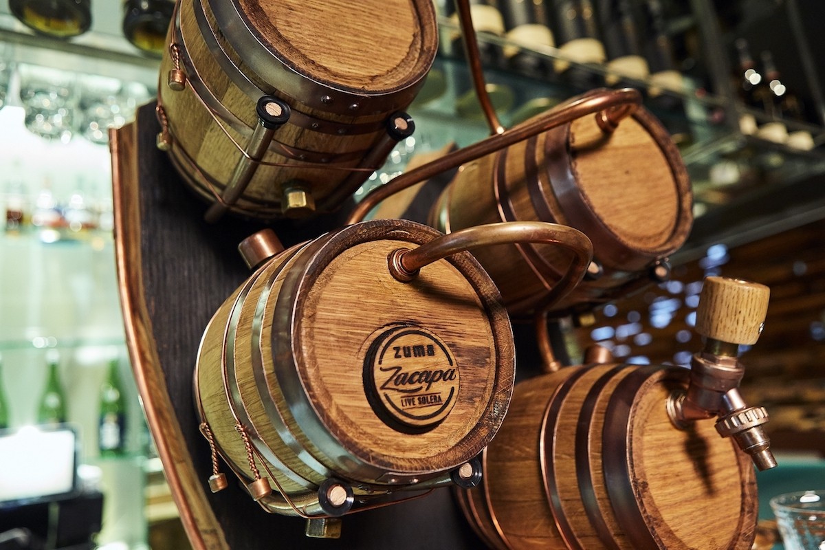 Originally developed by Spanish and Portuguese sherry and port makers, the solera process features a sequence of barrel ageing and fractional blending to create a refined finished product. The unique Zuma Zacapa system incorporates four American oak barrels connected in sequence, with the first three casks individually flavoured with selected culinary ingredients, with the Zacapa rum gradually passing through the barrel system, adding a unique and balanced taste profile to the drink. For Zuma Hong Kong, the rum is inflected with local culinary flavours such as Szechuan and pink peppercorns, fennel seeds and duck fat to create the signature cocktail.