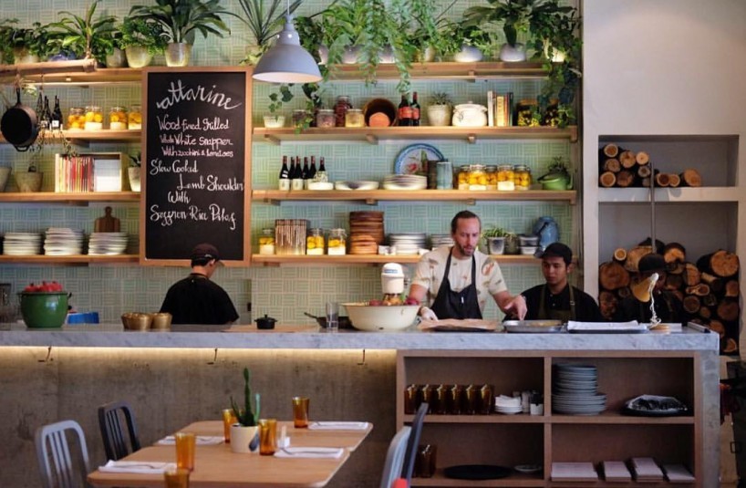 Food Locally sourced seasonal Indonesian produce features in the menu of well-conceived dishes that draw influences from the heritage of the spice trading routes and markets. The versatile wood-fired oven roasts vegetables and fresh whole fish, grills meats and bakes fresh bread all day. Standout dishes include the Wood-fired Whole Fish that is seasoned with sea salt, long pepper and bay leaves; Roasted seasonal vegetables such as baby-corn with chilli, dried mint and cheese curds; and the Lamb Shoulder Chops with saffron braised onions and garlic, topped with walnuts, olives and pomegranate.