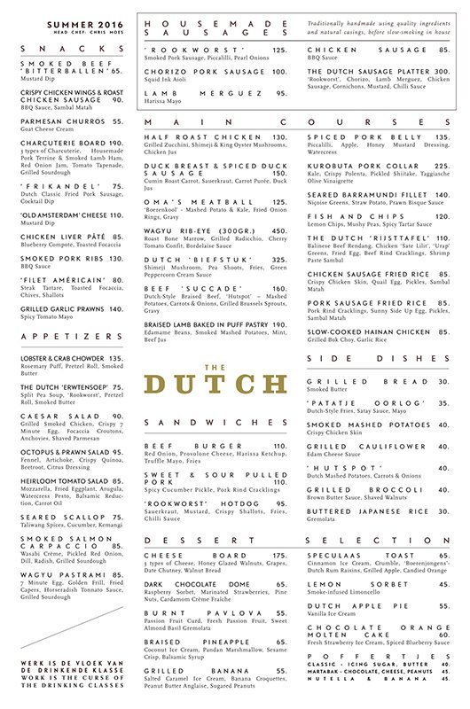 The Dutch menu selections