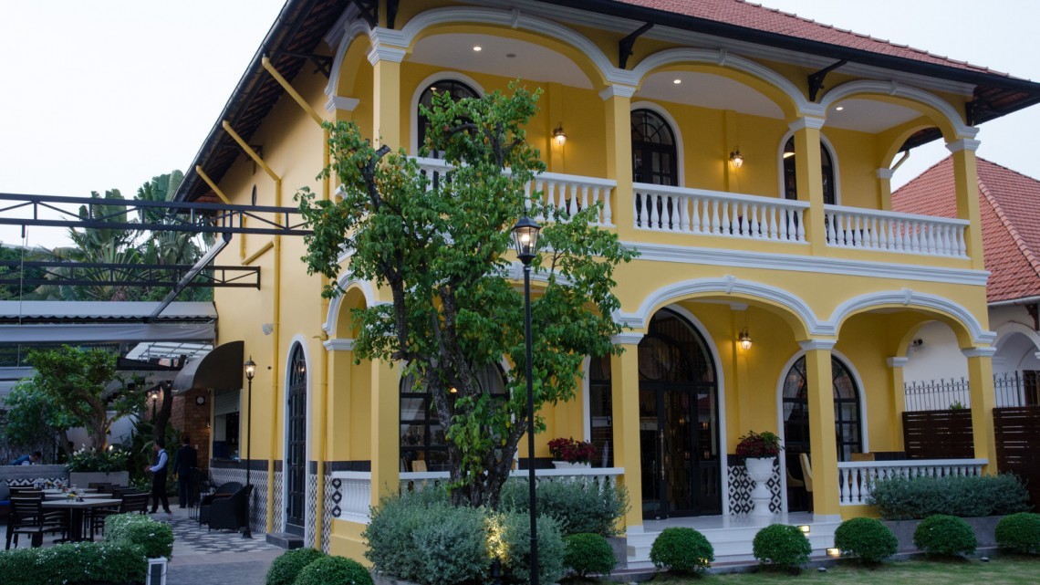 Elegant European-style dining in refurbished villa set within a residential garden setting