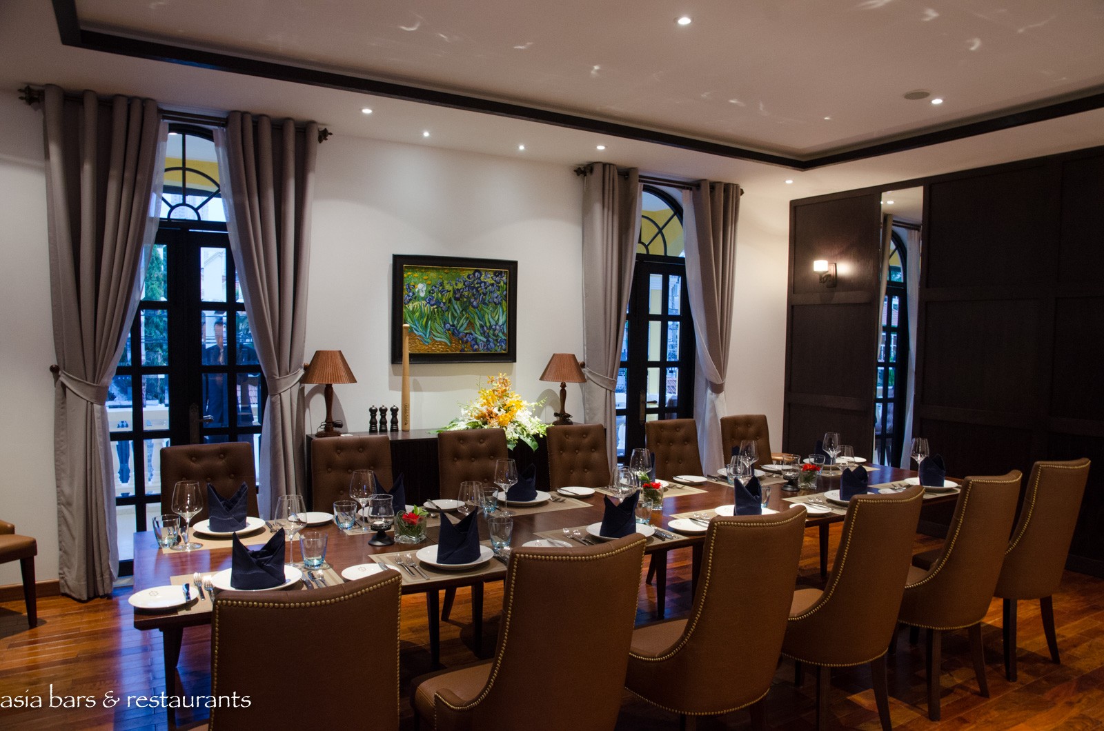 Design Occupying a spacious site in the heart of District 2, the prominent villa is set back from the street frontage, with a large outdoor terrace dining space extending down one side of the villa. Inside, the impressively proportioned dining spaces feature a contemporary luxe decor, a muted palette, and well-spaced table settings. Several VIP private dining rooms are located on the upper level – adjacent to the large walk-in wine cellar.