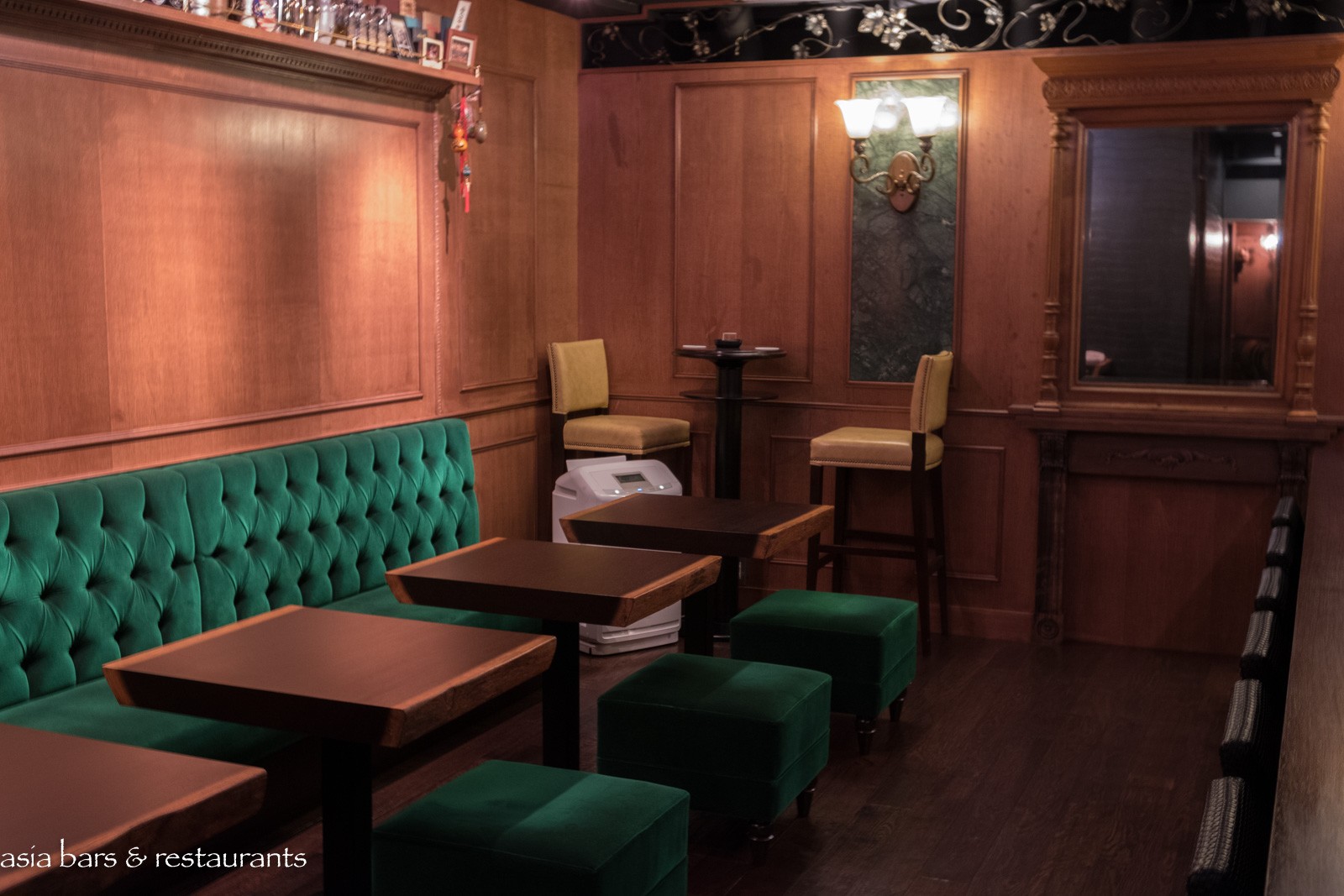 The classic bar interior features a showpiece 12-seat timber bar counter, timber panelling and flooring, while a plush green velvet banquette together with several small table settings are found at one end of the room. Reservations are not taken – but if phoned ahead an available seat will be held at the bar for 10 minutes only. Opening hours are Monday through Saturday from 5 pm to 11:30 pm last entry – bar closes 1 am; closed on Sundays and national holidays.