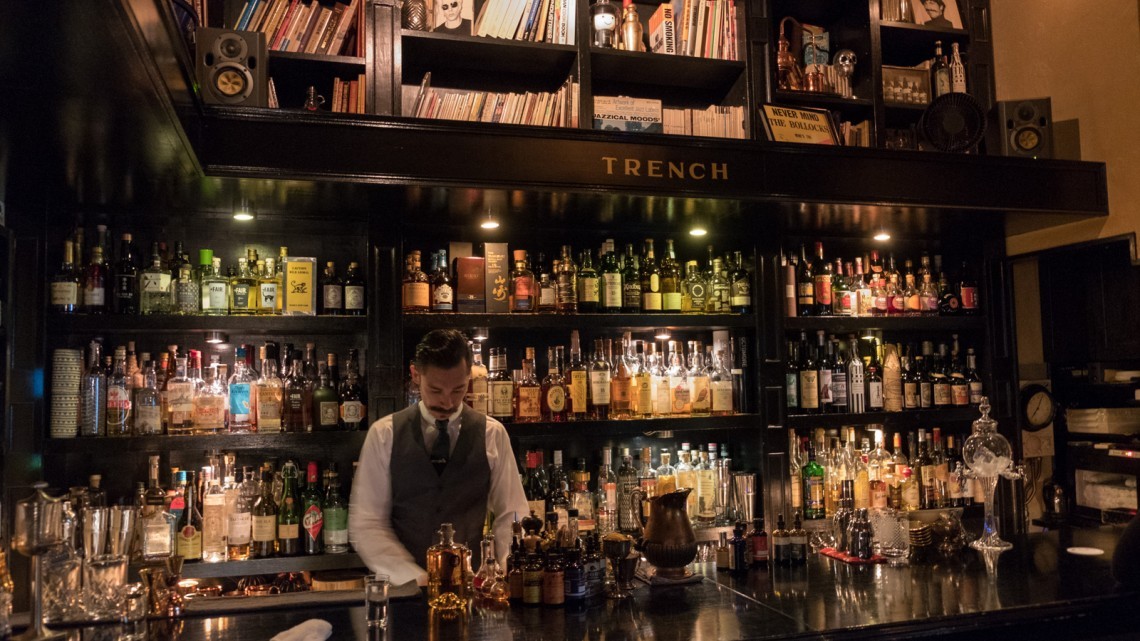 Bar TRENCH opens every day of the year except the New Years Holiday – on weekdays and Saturday from 7 pm until late – and Sundays from 6 pm. Music also features at Bar TRENCH with regular performances by guest jazz and acoustic musicians – perched precariously on the upper-shelf behind the bar. Check the Bar TRENCH Facebook page for details.