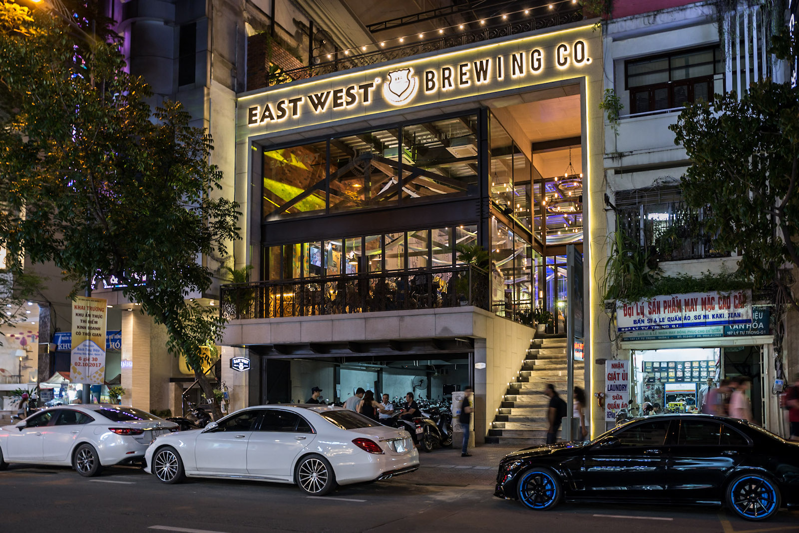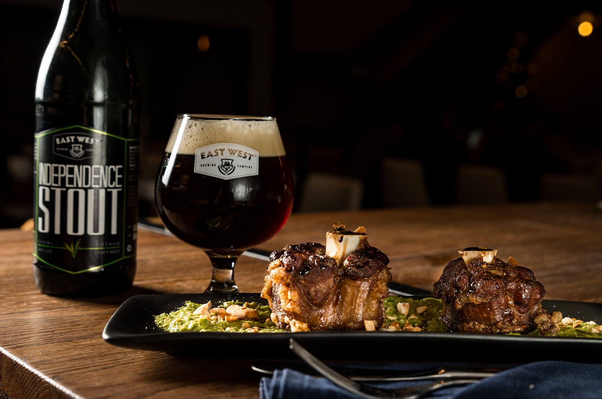 Established last year within Saigon’s prime District 1 neighbourhood, East West Brewing Co has contributed a significant advance to the rapidly expanding craft beer culture in Vietnam. Uniquely in Vietnam, East West combines under the one roof a working craft brewery plus taproom, upscale restaurant – and additionally – a rooftop beer garden. Housed within a cavernous, multi-level space designed with a contemporary industrial-chic aesthetic, with guests in the dining areas and taproom bar overlooking the gleaming fermentation tanks and state-of-the-art brewing operations. In a country that has one of the highest beer consumptions in the world, East West founder Loc Truong aims to attract new customers to craft beer culture as a more flavourful and rewarding beer drinking experience than that of the ubiquitous mass-production local beer labels.
