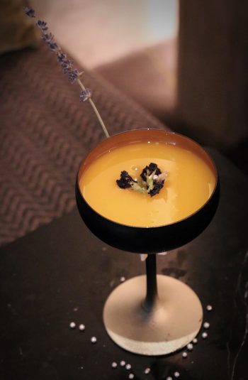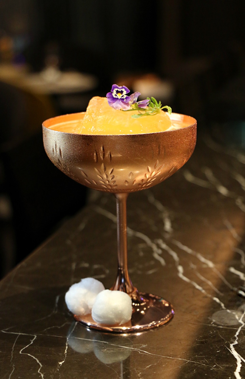 Signature cocktails have been created around a retro- theme of 1950’s and 60’s Pin-Up Girls and Poster Boys. Cocktails are named after celebrities of that era – exemplified by the Brigitte Bardot – a refreshing combination of Beefeater 24 gin, fresh passion fruit, St-Germain, chablis, mango juice, gingerbread, edible flowers, and gold spray. Other notable cocktails include the Dean Martin’s Old Pal – Bulleit Rye, Carpano Dry, Campari, hickory, served on a smoke pillow; and the Bettie Page – Olmeca Reposado, Campari, Lillet Rose, freshly squeezed pink grapefruit, yuzu, Limoncello, egg white, and soda.