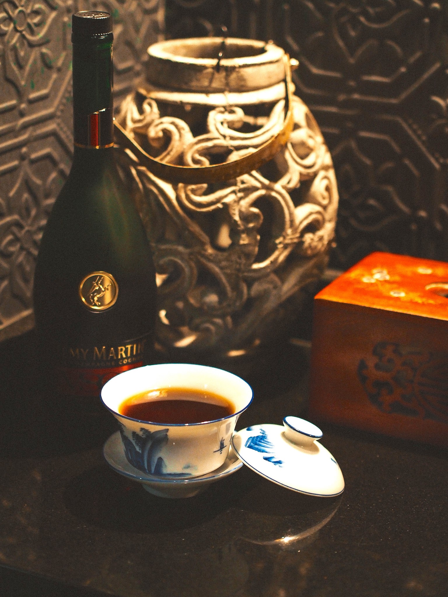 Serving the cocktails are a duo of experienced local bartenders – Byron Tan as Head Bartender – and Sam Wong the Group Chief Bartender. Their list of cocktails combine Chinese culinary ingredients with premium spirits – with individual cocktails forming a narrative of the reminiscences of Mona. Examples include Mona’s Tea – a blend of oolong PX sherry and Fernet Branca, whimsically poured into a teacup and served with a salted egg chocolate made by craft chocolatier Fossa. Another highlight – the Songstress – inspired by a traditional Chinese herbal remedy – blends Bulleit Rye whiskey with pi pa gao, and angostura bitters – served in Chinese herbal bottle. Also typifying the modern Asian cocktail theme is the That First Bouquet – a combination of Encanto Pisco, thyme-infused Aperol, lime juice, hibiscus and sour plum powder.