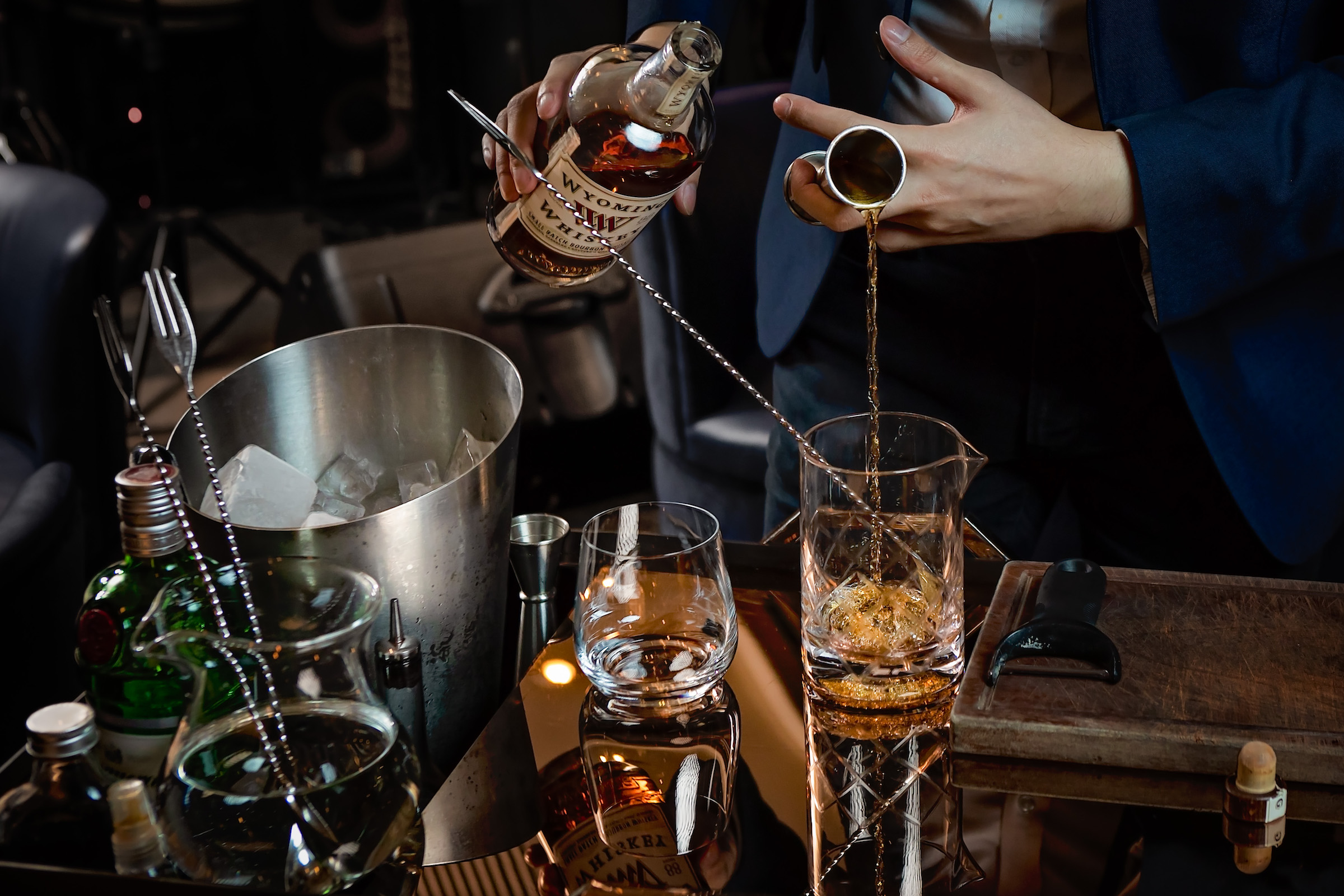 Barrel Aged Vieux Carre - H by Hine VSOP Cognac, Bullet Rye whiskey, red vermouth, bitters