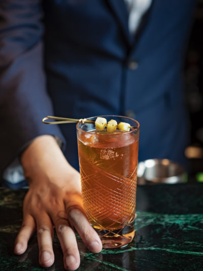 Other cocktail menu highlights include The Barrel Aged Vieux Carre – made with H by Hine VSOP Cognac, Bullet Rye whiskey, Cocchi Barolo Chinato Red Vermouth, and a variety of bitters; the Iryūjon (or illusion)  – created with Four Fox sake, St. Germain, yuzu and Angostura bitters.  The Gummibär is a mix of Osmanthus-infused Tanqueray, goji, lemon juice and honey, and completing the featured cocktails – the Savoy Truffle – a blend of Oolong infused gin, honey and a heavy whipping of cream cheese foam. Servings of bar bites accompany the cocktails – complementing each libation’s distinct flavours.