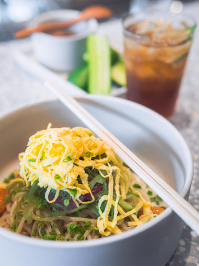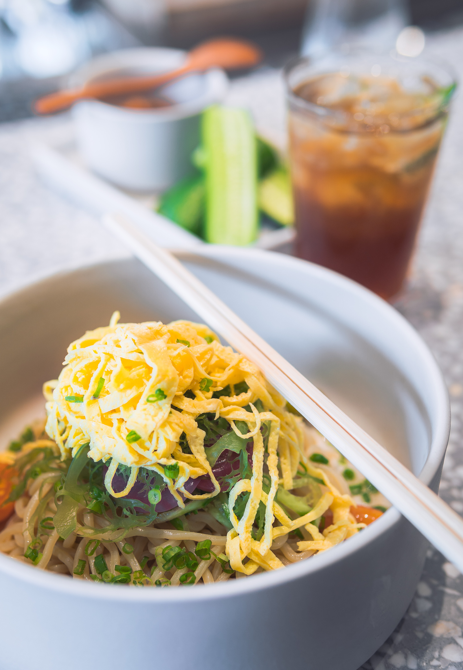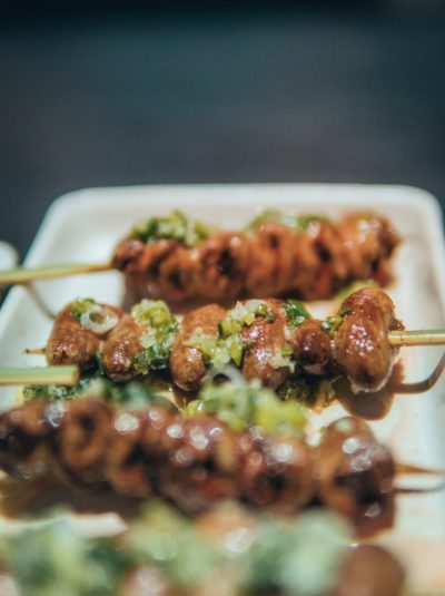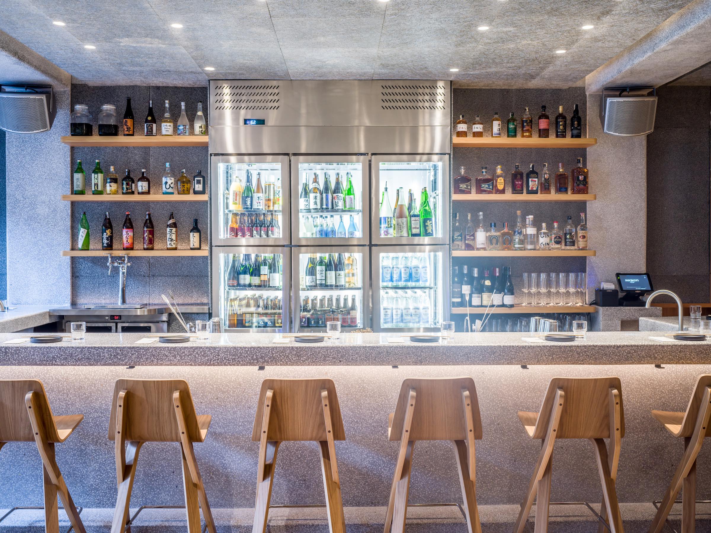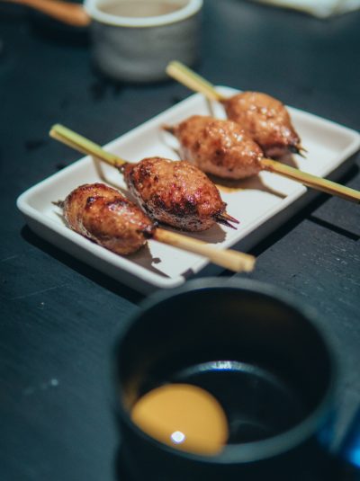 With an impressive portfolio of restaurant design projects that includes Sake Central (Hong Kong and Saigon) and Hong Kong’s Ho Lee Fook and Yardbird, designer-architect Sean Dix adopts a minimalist aesthetic at Renkon with a restrained palette of natural tones expressed with blond wood furniture and raw concrete surfaces, while an Ukiyo-e style mural splashed across the back wall adds a dramatic and colorful highlight. Set across two levels, the upper floor simmers with the scents of the open Japanese binchotan charcoal grill – fronted by the solid terrazzo dining counter. The Renkon culinary team serve up appetizing izakaya dishes exemplified by the Chicken Thigh Skewers coated with house-made shichimi and a splash of lemon, and Pork Meatballs served with egg yolk and tare.