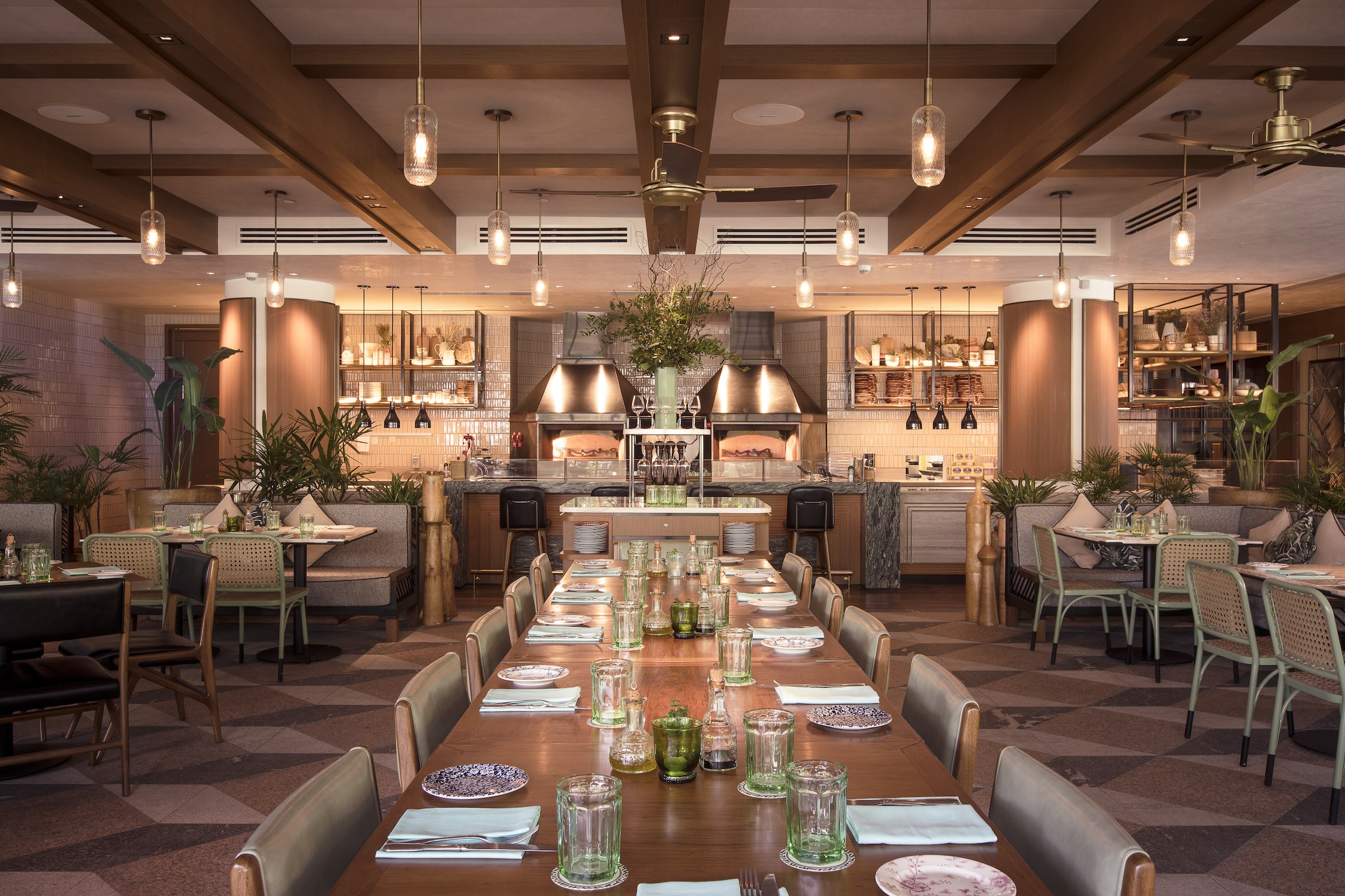 Dining. A recently refreshed menu created by Executive Chef Marco Turatti, adds lighter lunch dishes, expanded pizza selections all underscored by interpretation of contemporary Italian flavours. The signature Risotto Milanese combines safron, pecorino cheese and red wine reduction; while the Black Truffle Taliatelle comes with egg pasta, parmesan, fresh black truffle and truffle salsa. Wood-fired pizzas are a classic favourite, such as the Capricciosa, a filling round of house-made tomato sauce, mozzarella, pork sausage, olives and oregano. Vegetariano comprises braised zucchini, fresh burrata, smoked olives, chorizo, and sun-dried tomatoes. Enjoy the sweet Tiramisu, presented as a potted plant – with layers of espresso-infused sponge fingers; the lemon-dipped Bombolini; or Gelato Trio, with fresh flavours served each day.