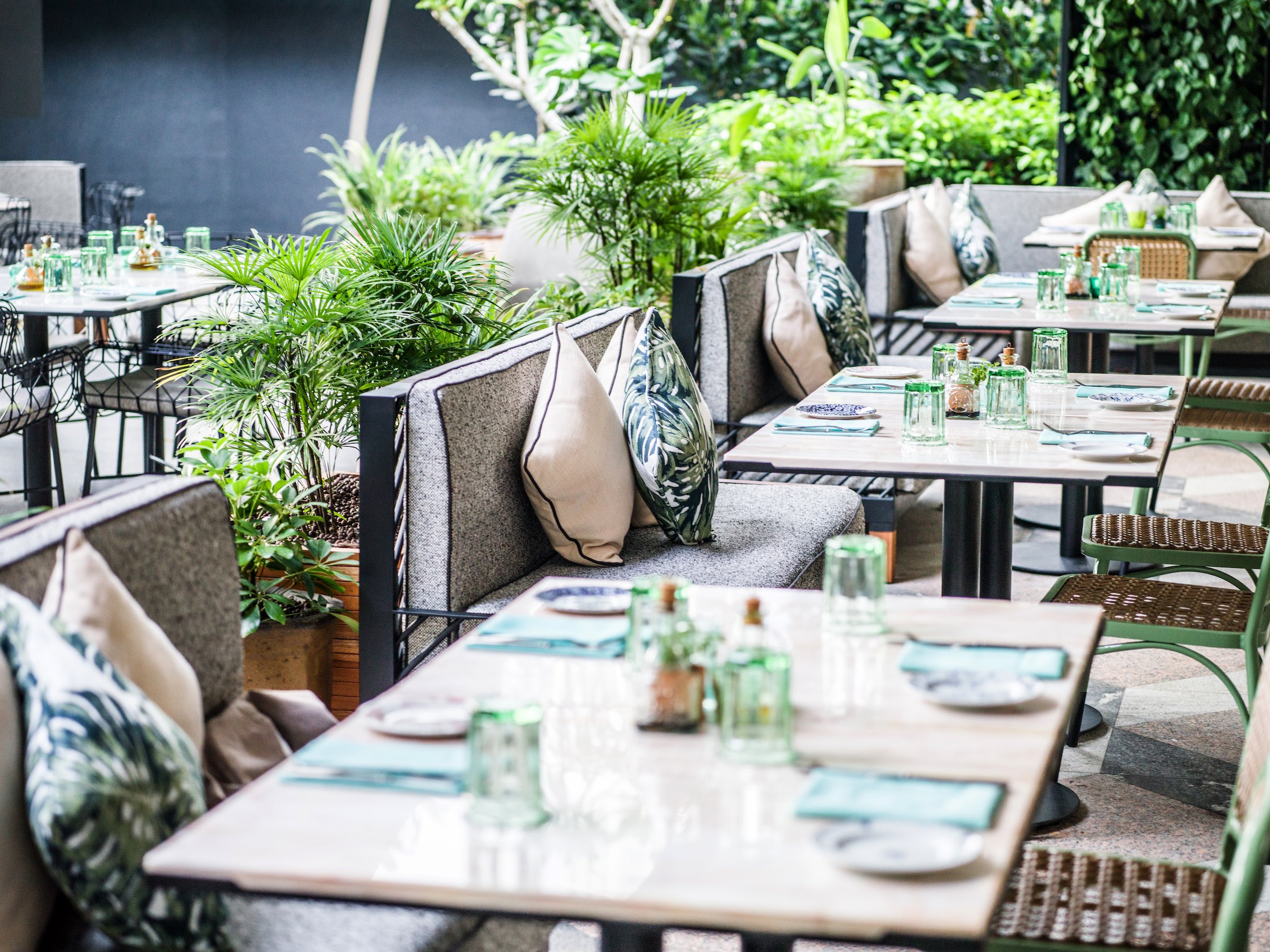 With the 2017 opening of Intercontinental Singapore Roberston Quay dining options at the already popular The Quayside were elevated to a new level of sophistication. Occupying the prime riverfront section of the new hotel, modern Italian eatery Publico Ristorante elegantly combines indoor and outdoor terrace dining with a stylish wine bar to create a vibrant new destination. Styled with a contemporary aesthetic that recognises an Italian heritage with a pair of wood-fired pizza ovens, and decor elements such as granite flooring and intricate masonry at the bar. Additionally, floor-to-ceiling windows open out to provide a seamless connection between indoor dining areas and the al fresco riverfront garden terrace.