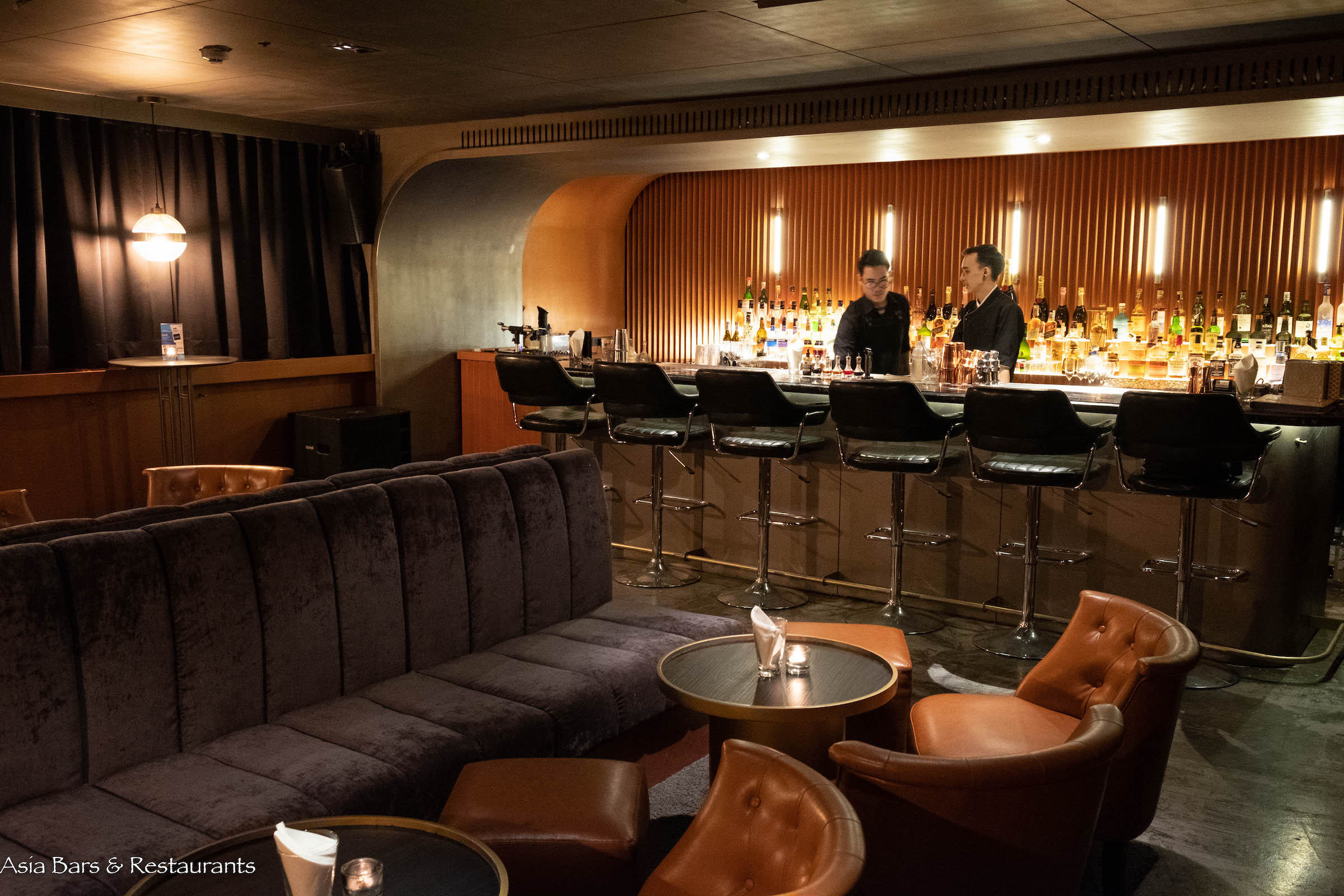 #FindThePhotoBooth can be found within a 2nd-floor sports bar – adjacent to the Grand President Hotel on Soi 11. Once you have figured out the entry process – the space revealed down a dimmed passageway and behind dark curtains exudes the atmosphere of a sophisticated drinking den. A handsome bar is centre stage – while the spacious interior accommodates patrons on plush leather chairs and velvet banquettes. Unusually for a speakeasy bar – there is floor space for dancing – and energised with resident DJ’s on Friday and Saturday nights – #FindThePhotoBooth is well-attuned with its location along Bangkok’s famous Soi 11 nightlife destinations.