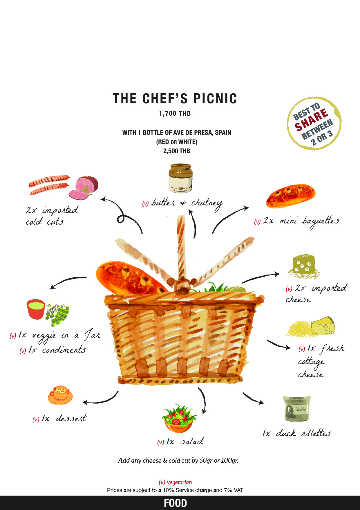The Bar Upstairs’ wine menu is paired with selections of small bites and comfort food from Brasserie Cordonnier’s kitchen. A standout feature of the menu – the Chef’s Picnic Basket – is packed with an assortment of baguettes, homemade terrine, top quality imported cheeses, cold cuts – ideal for casual sharing with the wines.