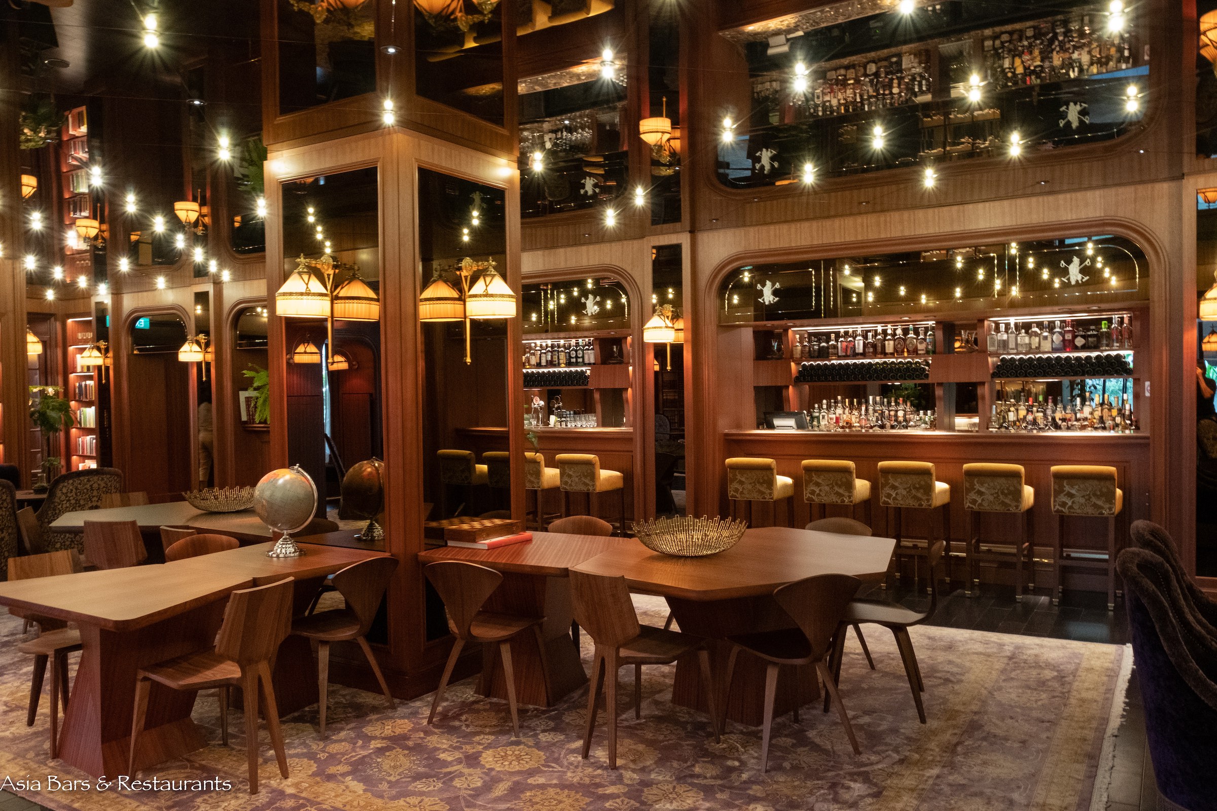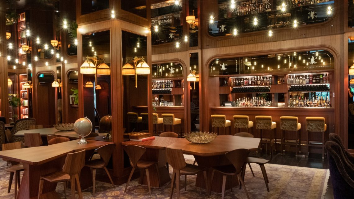 Elegant library-themed bar and social dining space within newly opened Six Senses Maxwell
