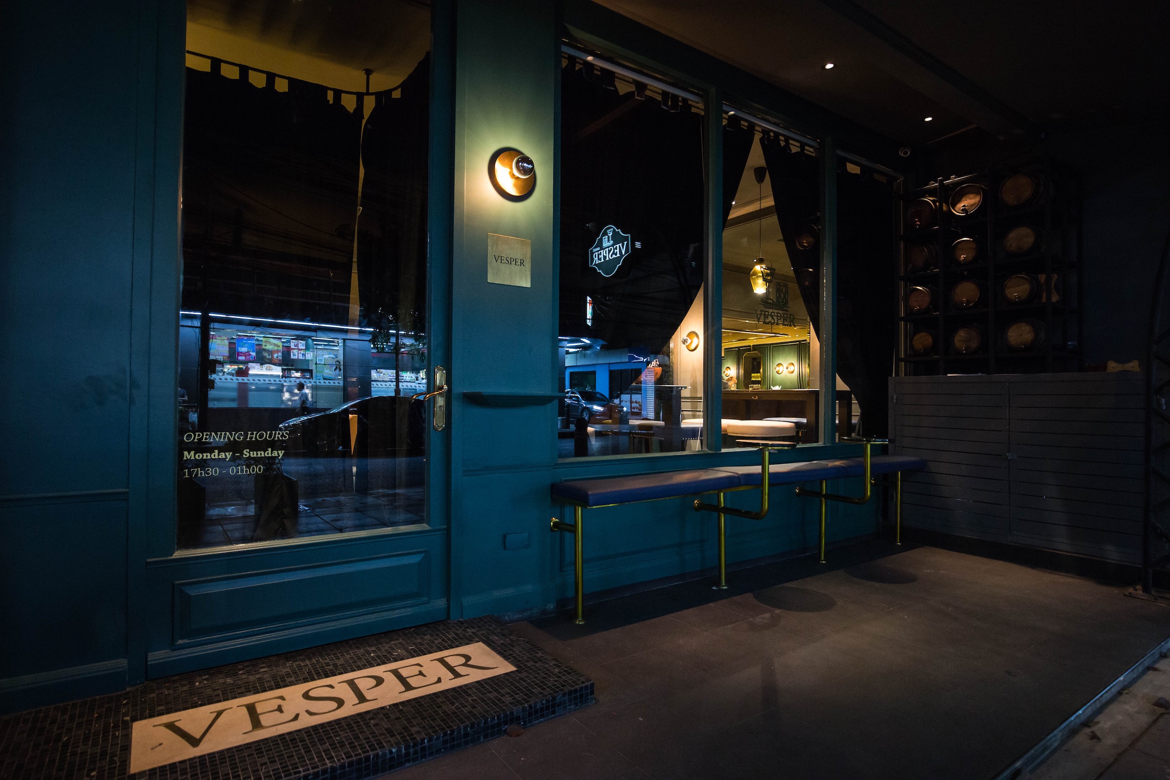 Vesper is conveniently located in Bangkok’s vibrant Silom precinct and opens daily between 5:30 pm and 1:00 am. Table and bar seat bookings are recommended.