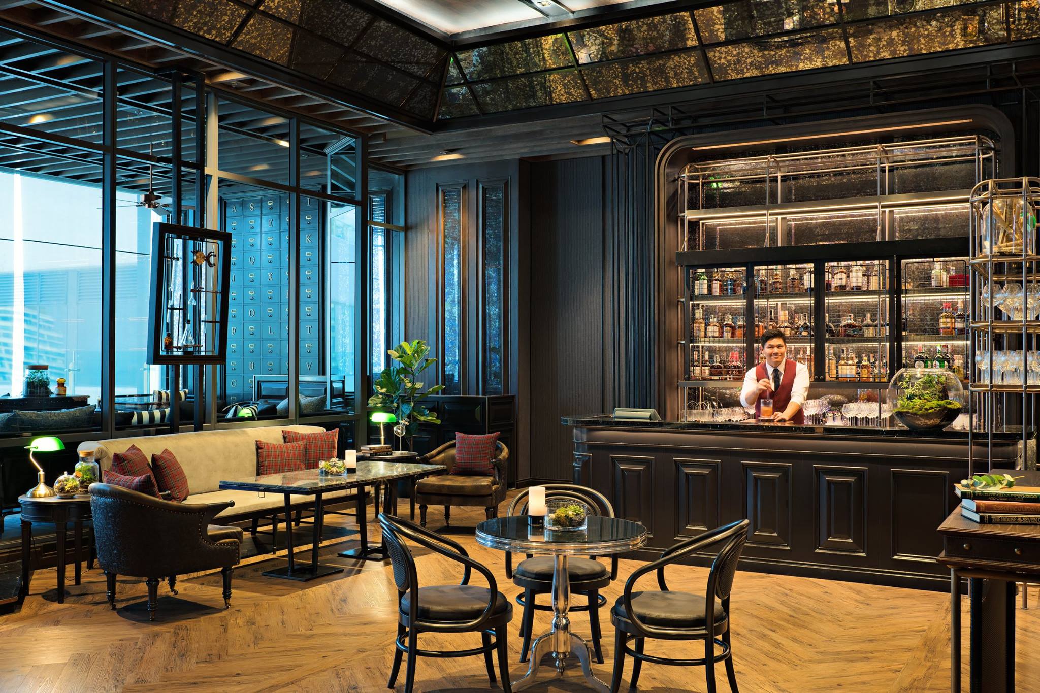 Specialising in dark spirits, head bartender Rojanat Chareonsri (Ping) has created a concise menu of classic vintage and prohibition era cocktails. Guests can also select their beverages from the list of premium Scotch single malts and blended whiskies; Japanese single malts and blends; with selections of dark rums and cognacs rounding out the dark spirits collection. Among standout cocktails to try – the Devonshire Daisy is crafted from Plantation pineapple rum, green chartreuse, house-made parsley cordial, fresh lime, and soda; while the Bobby Burns combines The Glenlivet Founders Reserve with Carpano Classico, Benedictine, and Giffard Crème de Cacao.