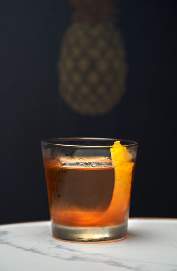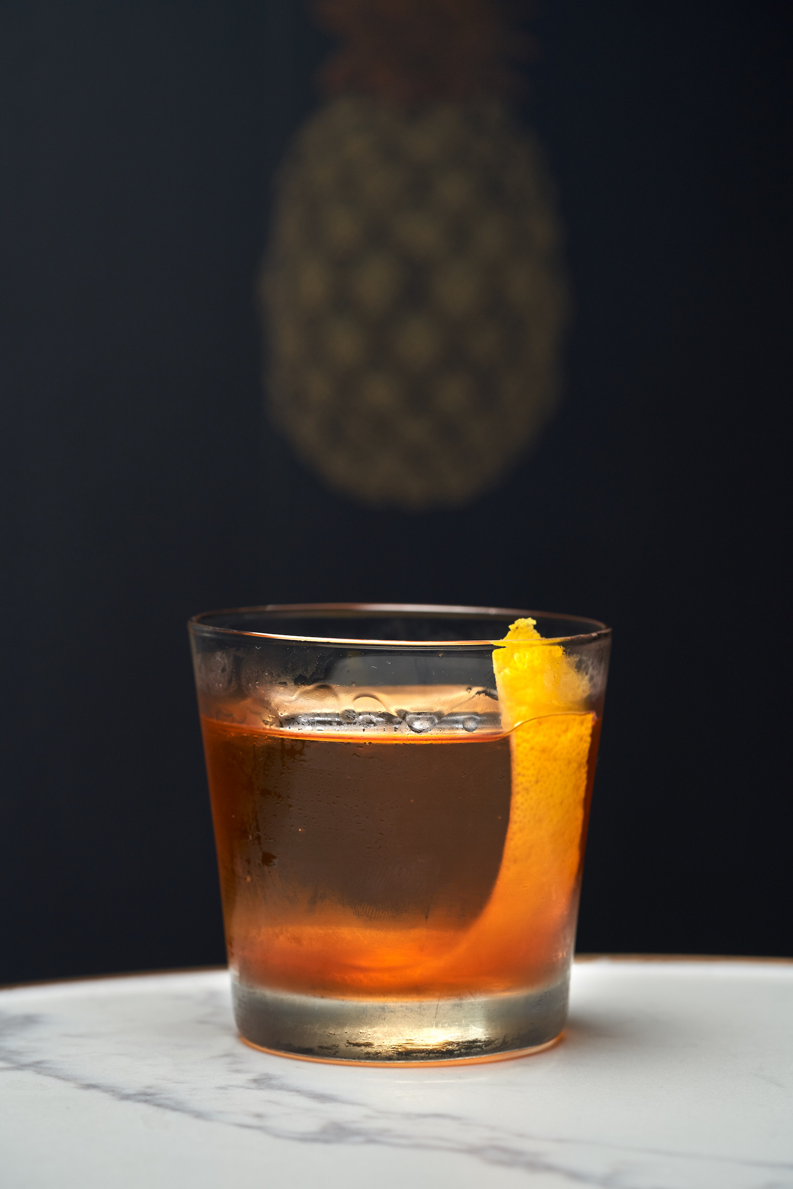 Following an extraordinary first 2 years in Hong Kong, multi-awarded (ranked #1 on Asia’s 50 Best Bars 2019) cocktail bar The Old Man recently opened their first international offshoot on Keong Saik Road in Singapore. Taking cues from its discreetly located Hong Kong flagship, the literature-inspired bar and lounge takes a step back from the street’s vibrant dining scene, marking its entrance with a solitary pineapple lamp and nondescript doorway. Contrasting with its under-stated exterior, the interior bar takes on a sophisticated, tropical vibe. The hallmark I-shaped bar counter including a chilled brass strip keeping cocktails chilled while guests socialise and engage with the bartenders. Dimly lit bookcases extend down the walls, conveying a literary nod to the works of Hemingway, while also showcasing vintage crystal bottles. Beyond the centrepiece bar, a comfortable lounge space entices relaxed cocktail experiences.