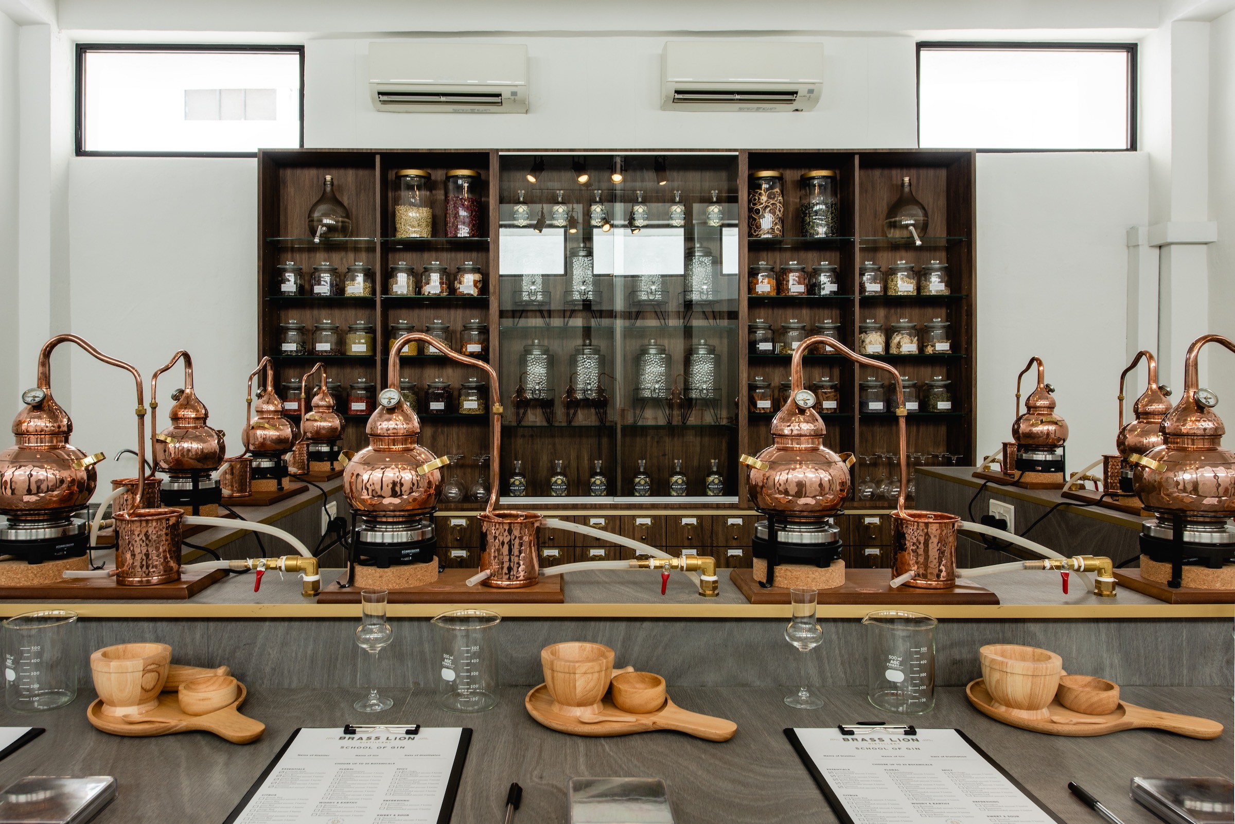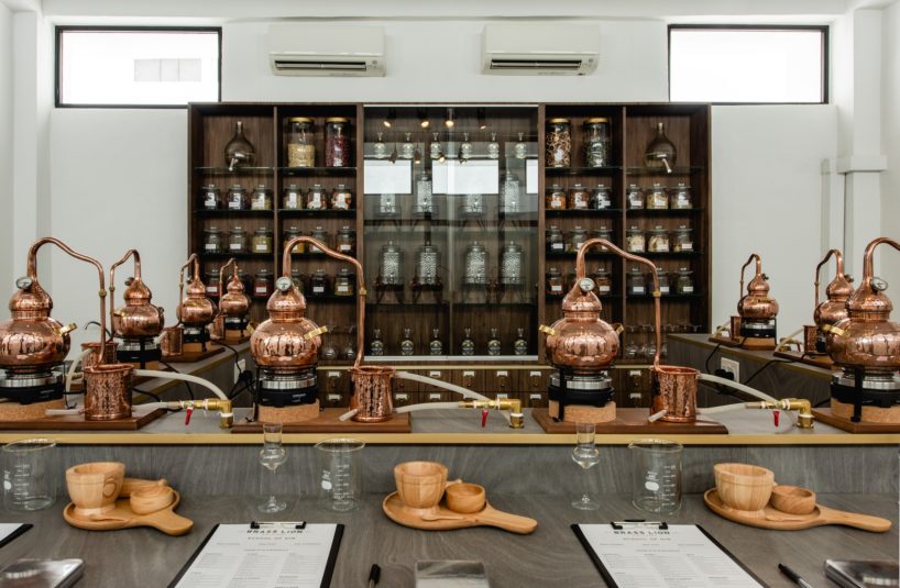 Welcoming visitors, the stand-alone Brass Lion Distillery premises incorporates the working copper still, hand-bottling and labelling on the ground floor. Occupying the upper level are the in-house R&D lab; a spacious tasting room and bar plus retail corner; and the newly established Gin School. Offering a holistic gin experience – visitors can take a one-hour Distillery Tour (S$45) – or the 3-hour Gin School (S$198 – includes a 500ml bottle of personalised gin). At the Tasting Room bar – guests can taste the Brass Lion gins presented in a menu of cocktails and Gin & Tonics.