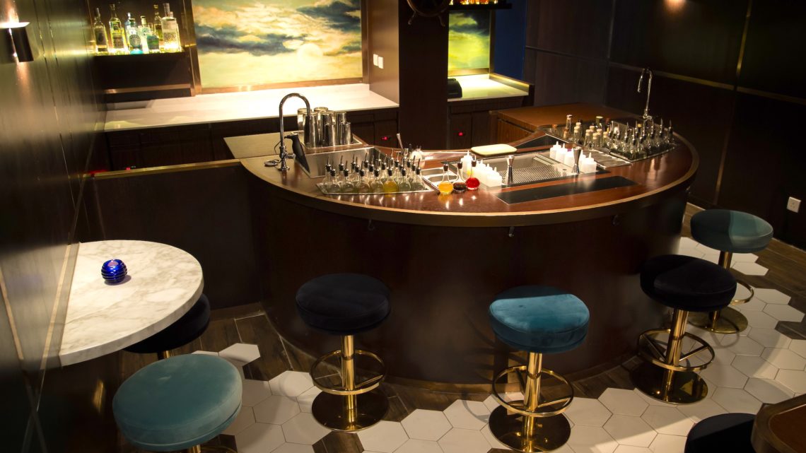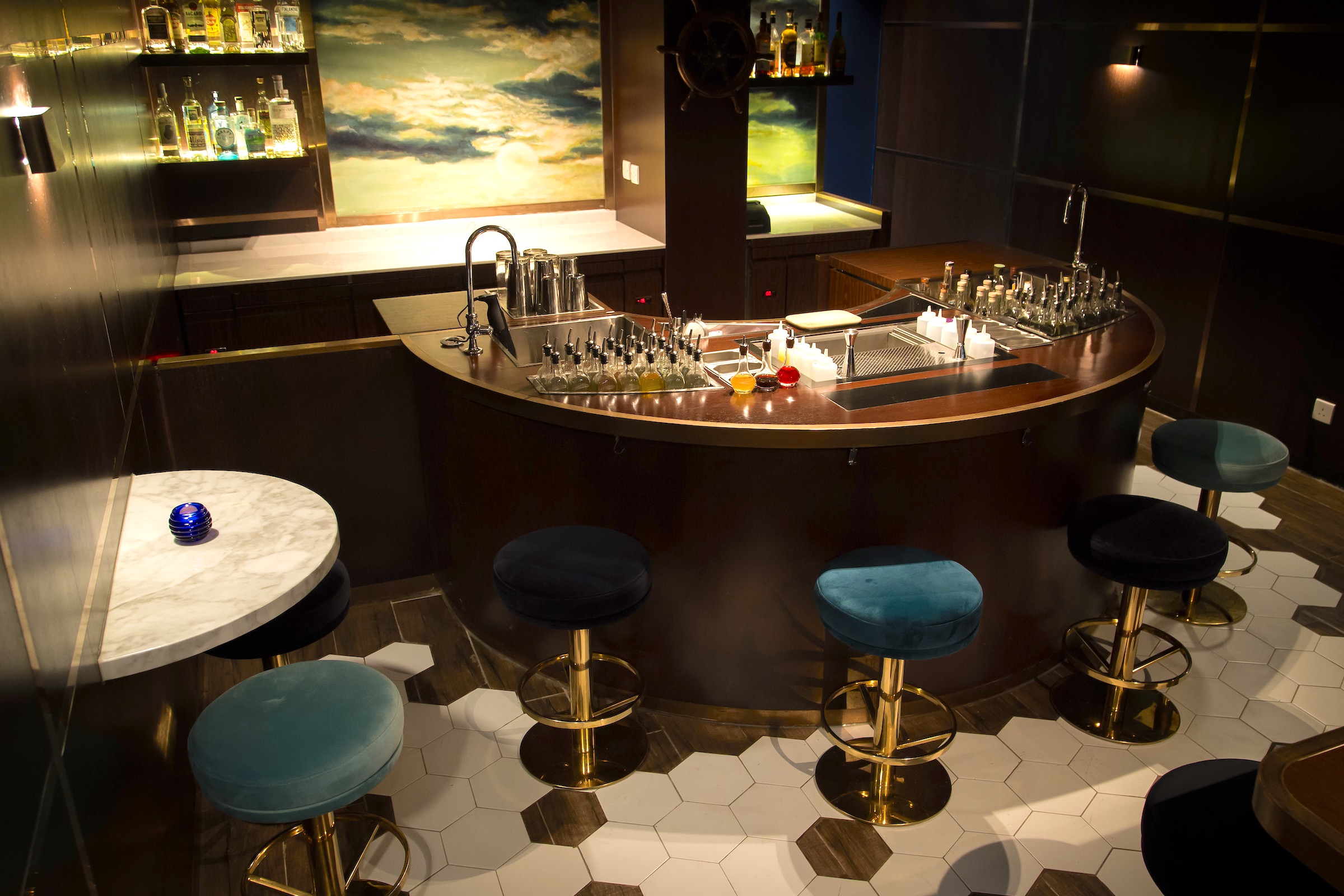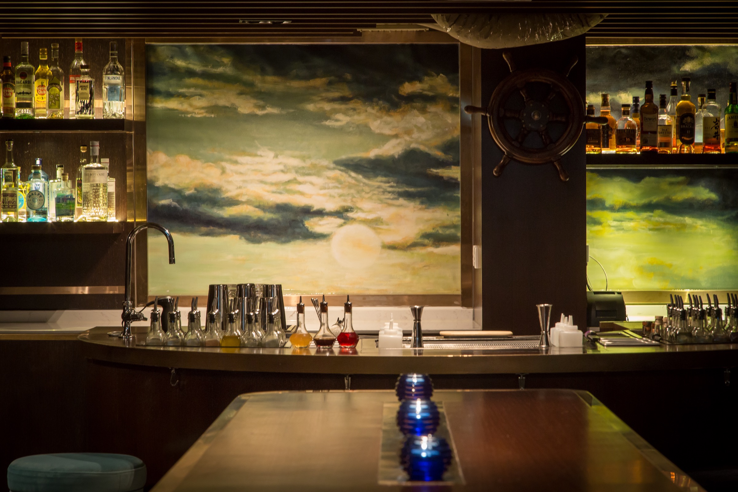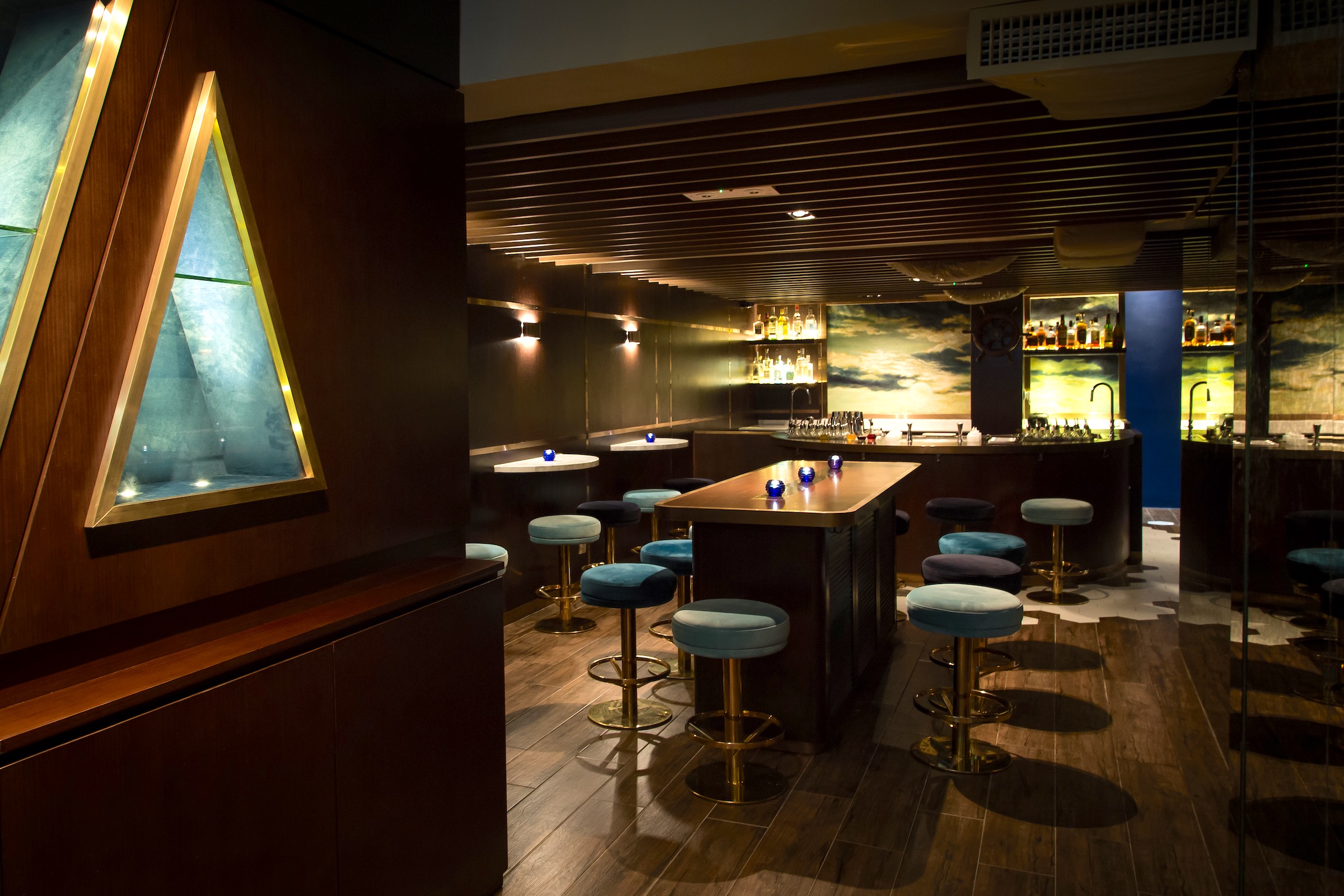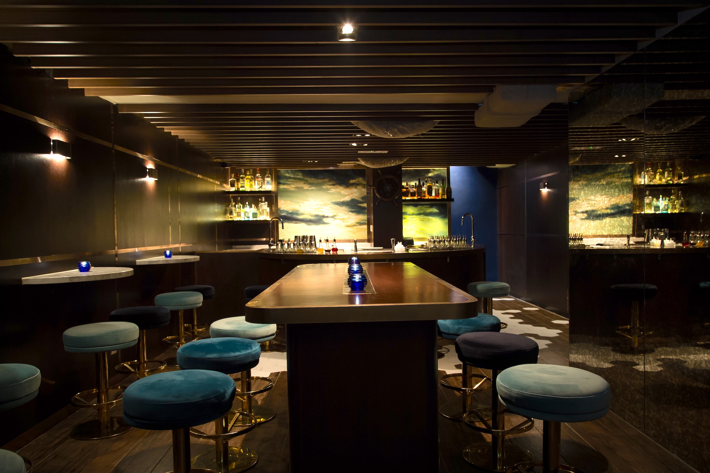 Located in a Sheung Wan neighborhood, The Sea adopts a nautical theme that takes its design inspiration from Ernest Hemingway’s beloved boat. Within the compact space that seats around 35 guests, the nautical influence is expressed in the polished timber flooring, dark mahogany bar, slatted timber ceiling and, brass-trimmed furniture that together evoke a “boat cabin” aesthetic.