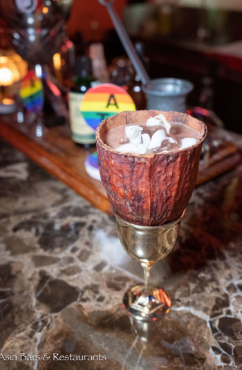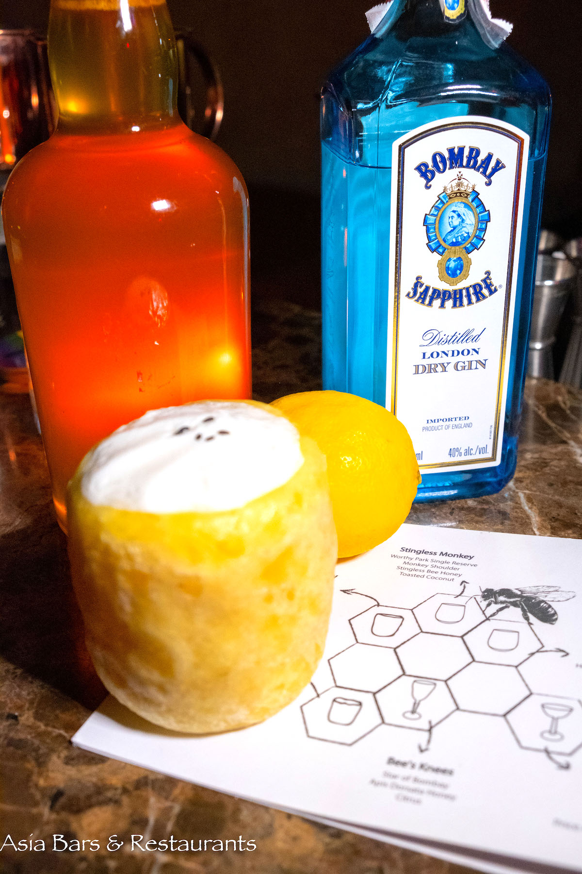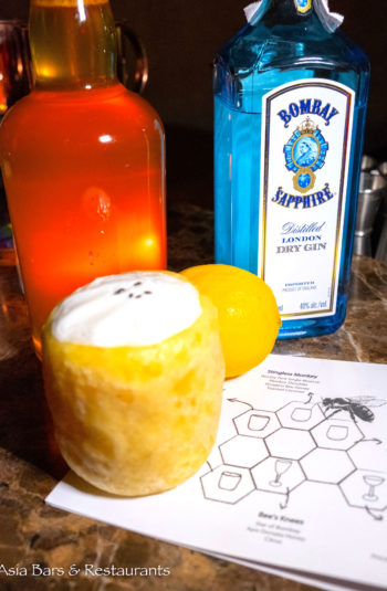 Currently, the stand-out ingredient featured is wild honey – sourced from Thai provinces. Each honey type has a distinct flavor profile – and when blended into syrups and mixed with premium spirits creates intriguing tasting cocktails. The current list of six Wild Honey Cocktails showcases the rare “stingless bee honey”, plus honey produced from other native bee species. A popular cocktail choice is the Eastern Honey – combining gin; Apis cerena bee honey; honey foam; sesame – served in a bee’s wax mug.