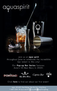 Iconic Hong Kong penthouse bar and lounge aqua spirit will be hosting a series of pop-up bar events during the month of June showcasing the bartender talents of local bars featured in Asia’s 50 Best Bars 2020 listings.