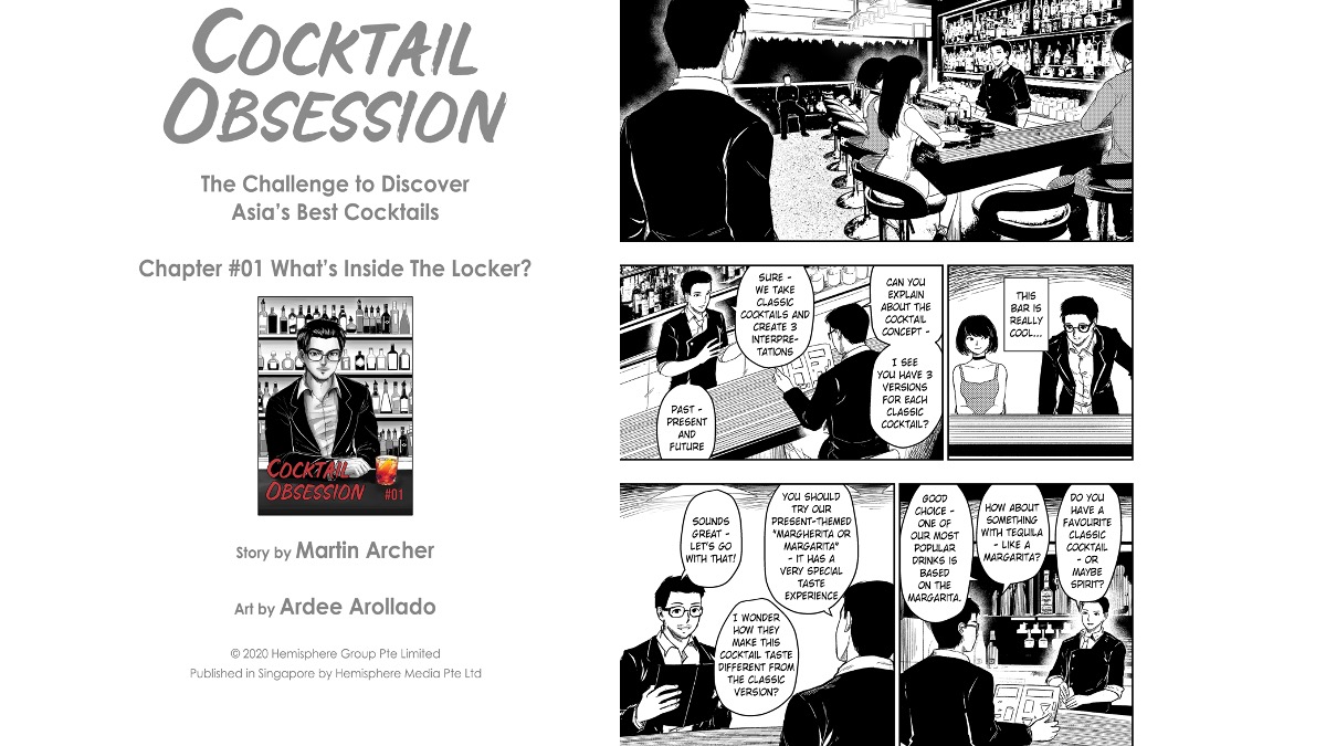 An original manga comic series titled “Cocktail Obsession” has been launched this month by Hemisphere Media in Singapore (publisher of Asia Bars & Restaurants website since 2010). The first chapter – in digital format – is now “live” on Amazon/Kindle – with new chapters to follow monthly.