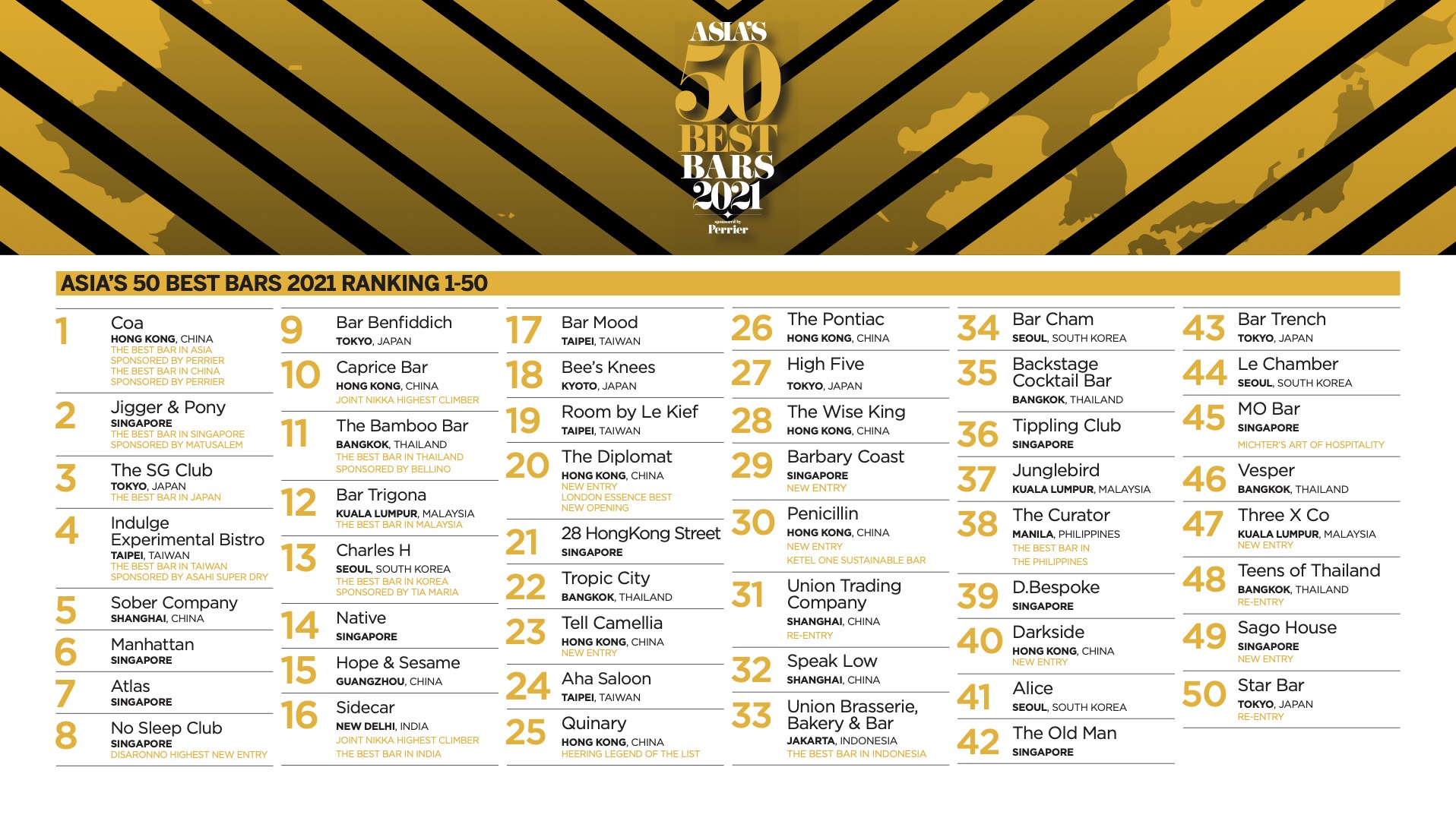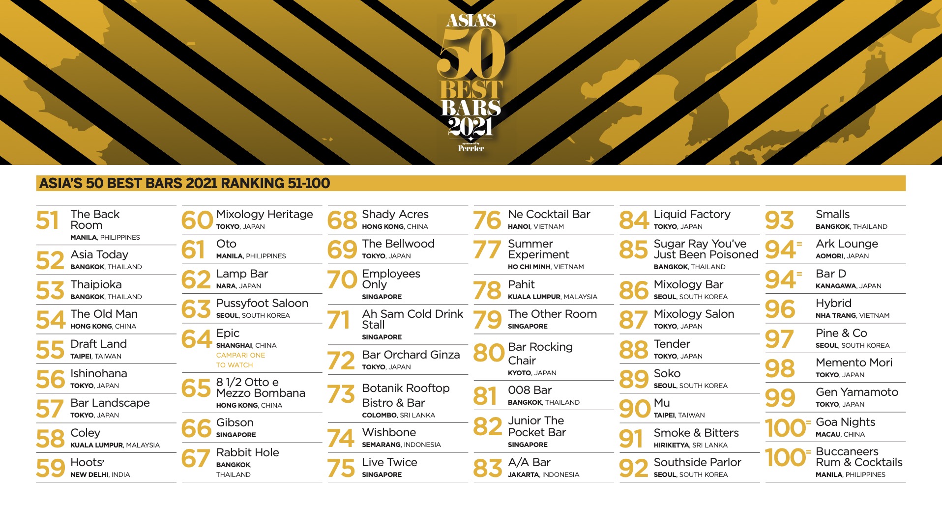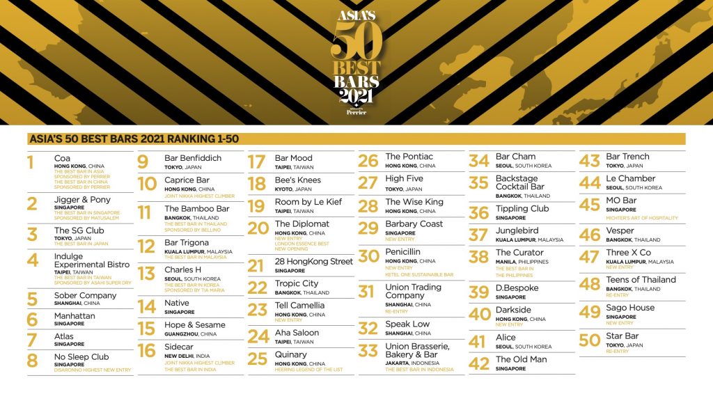 The full list Asia’s 50 Best Bars 2021