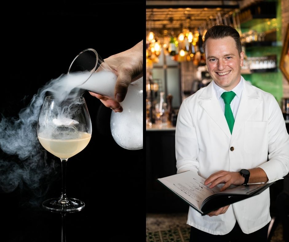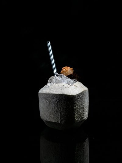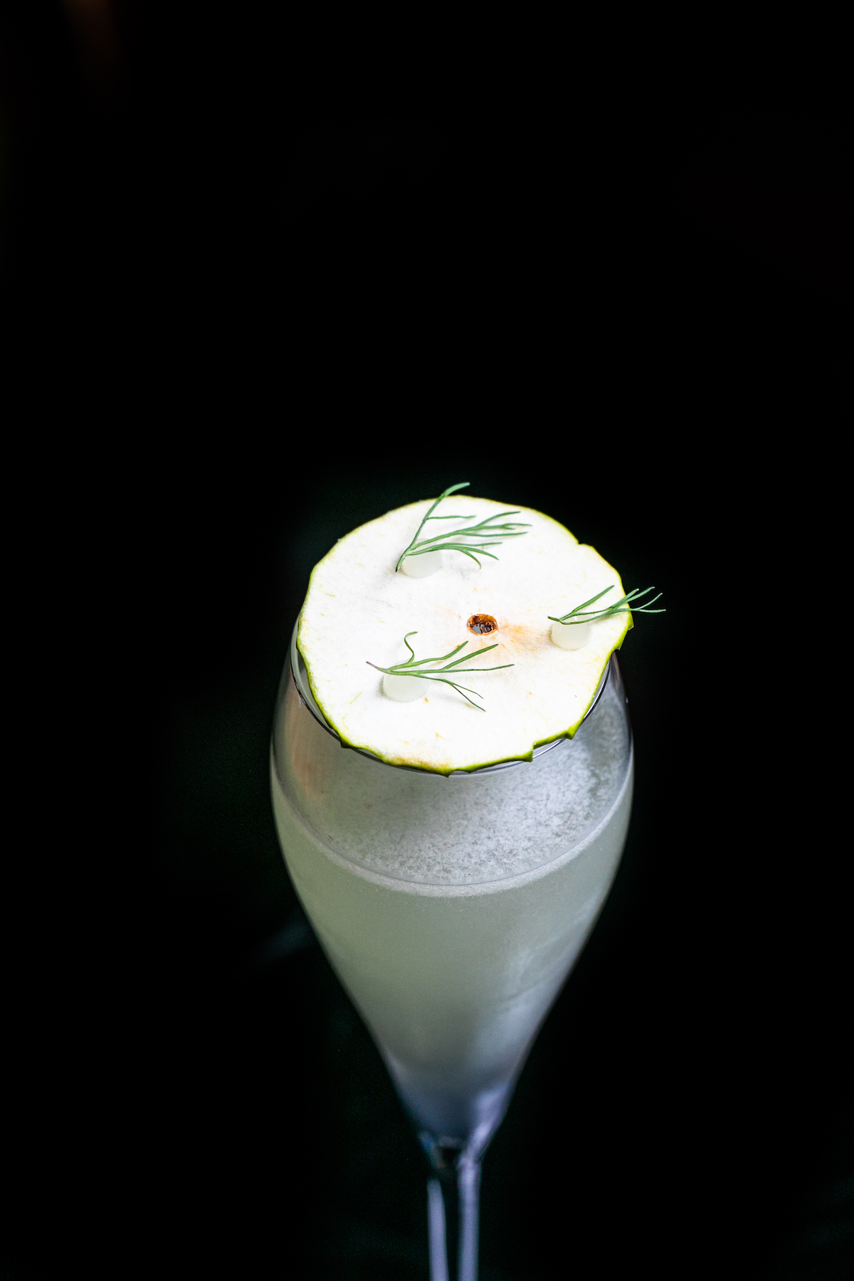 Cocktail highlights include the savory and herbaceous Ciphers & Constellations, a nod to Joan Miró’s renowned painting with dill, calvados, Sudachi lime, champagne, and sherbet (S$22); the Basquiat-inspired Untitled (Skull) with chestnut, Nicaraguan rum, green apple, sandalwood, and bitters (S$25); and the Living Still Life, a nod to Dali’s fascination with the ‘atom’ with vermouth, plum blossom, coconut, rambutan, sugar cane (S$22).