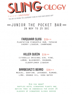 From 28 November to 25 December 2021, Slingology at the Long Bar unveils its fifth instalment with bespoke tropical cocktail creations from Junior The Pocket Bar. Discover their rendition of the iconic Singapore Sling, Farquhar Sling, along with two other new creations that capture the captivating aromas and flavours of the forest.