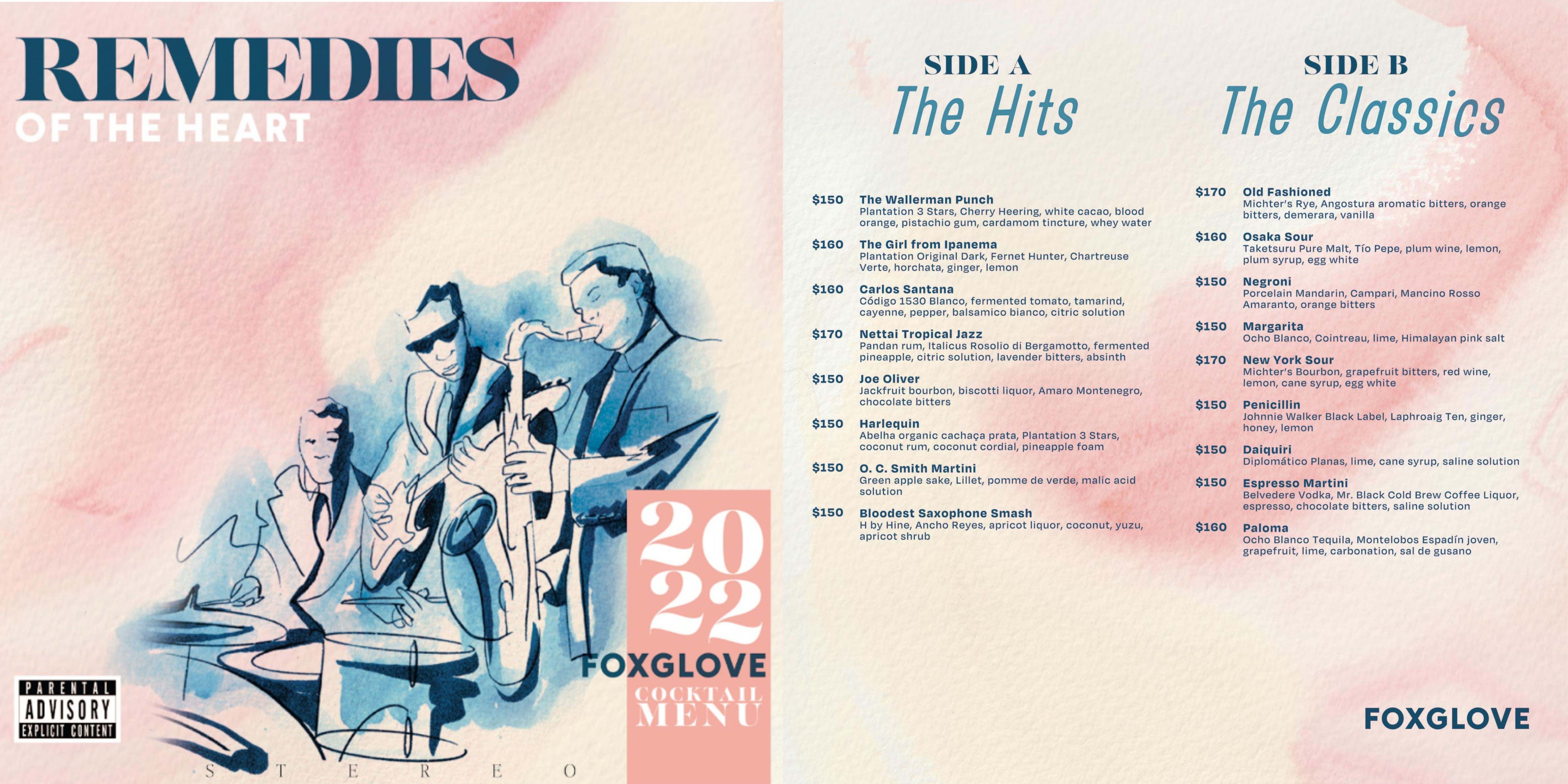 The Hits, a new masterfully crafted cocktail selection devised by Foxglove’s talented mixologists, harks back to the bygone glamor of jazz establishments from Louisiana to Rio de Janeiro