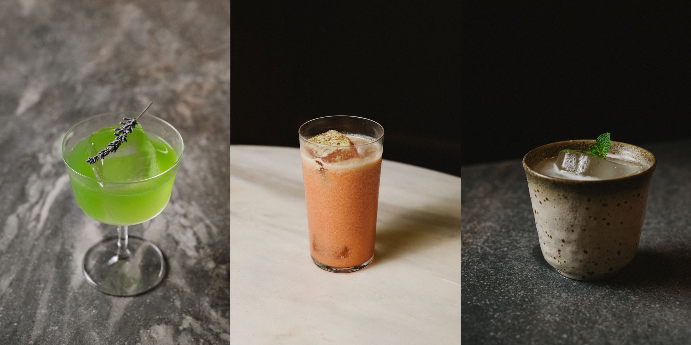 And named after the most celebrated Japanese Latin jazz band, the Nettai Tropical Jazz pairs tropical Asian flavors with extravagant spirits, featuring a homemade pandan rum, fruity and floral Italicus Rosolio di Bergamotto, savory lacto-fermented pineapple, and delicate lavender bitters, jazzed up with a hint of bold absinth.