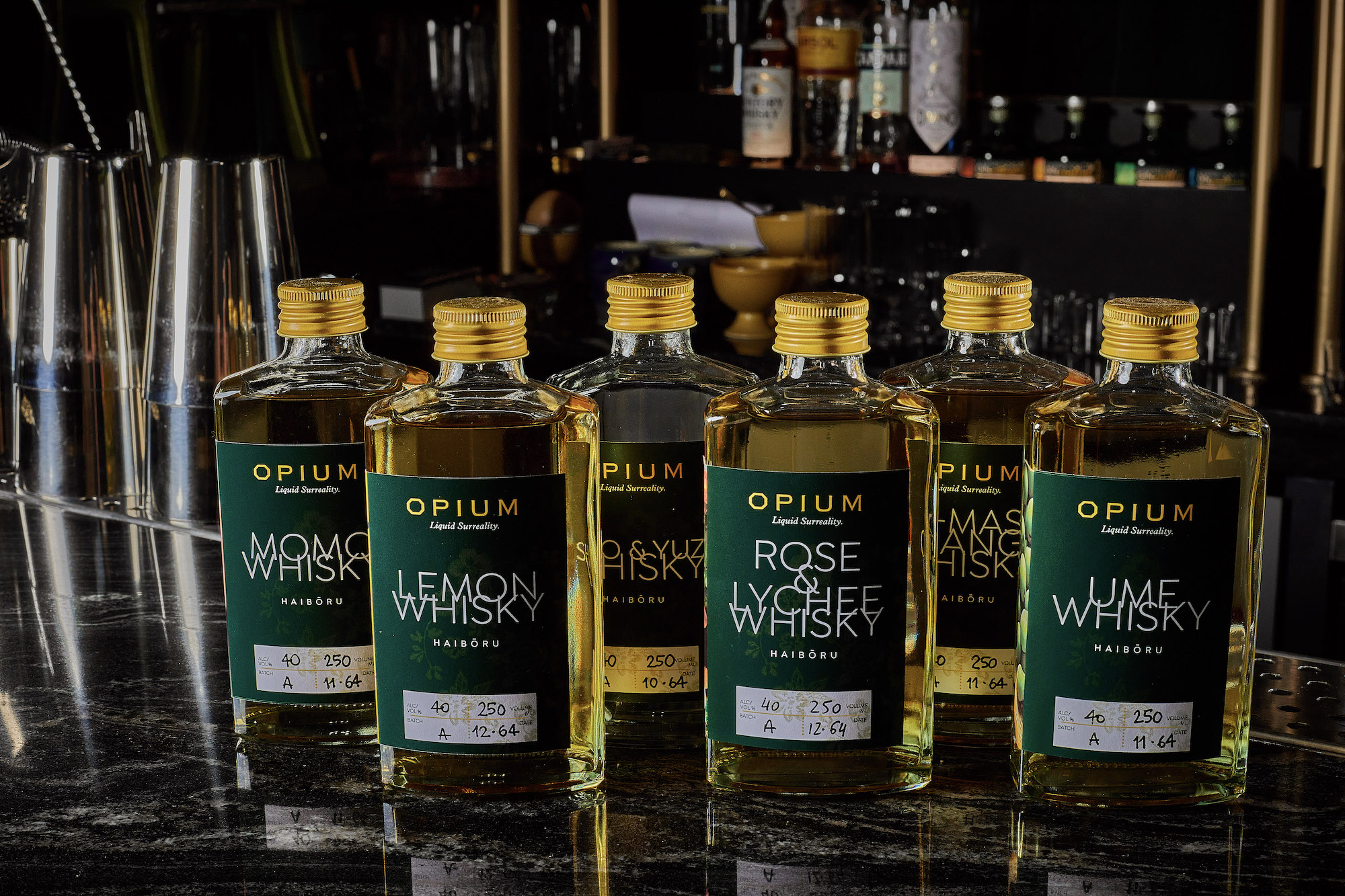 Conceived and curated by Bar Director Arnon Hoontrakul and Head Bartender Matteo Cadeddu – the cocktail program was informed by the concept of “Liquid Surreality”. Opium Bar’s cocktail menu has been formulated under 6 main liquid categories – apéritif, sparkle, acid, acid+, solo, and duo. Essential cocktail ingredients are crafted in-house, including modifiers, flavorings, colorings, syrups, and garnishes – also expressed in bottled cocktails and spirit infusions.
