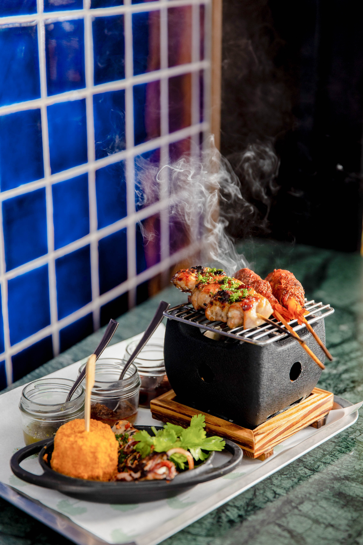 Diners at Bar.Yard can select from an extensive menu of American-style barbecue dishes – artfully inflected with South American influences by Executive Chef Lamberto Valdez Lara. Menu options include sharing combos and platters; smoked meats such as BBQ Pork Belly and Baby Pork Ribs; Mexican-style tacos, quesadillas, and nachos; while the “bad-ass skewers” feature corn, bacon-wrapped shrimps, and an Arabic mixed grill.