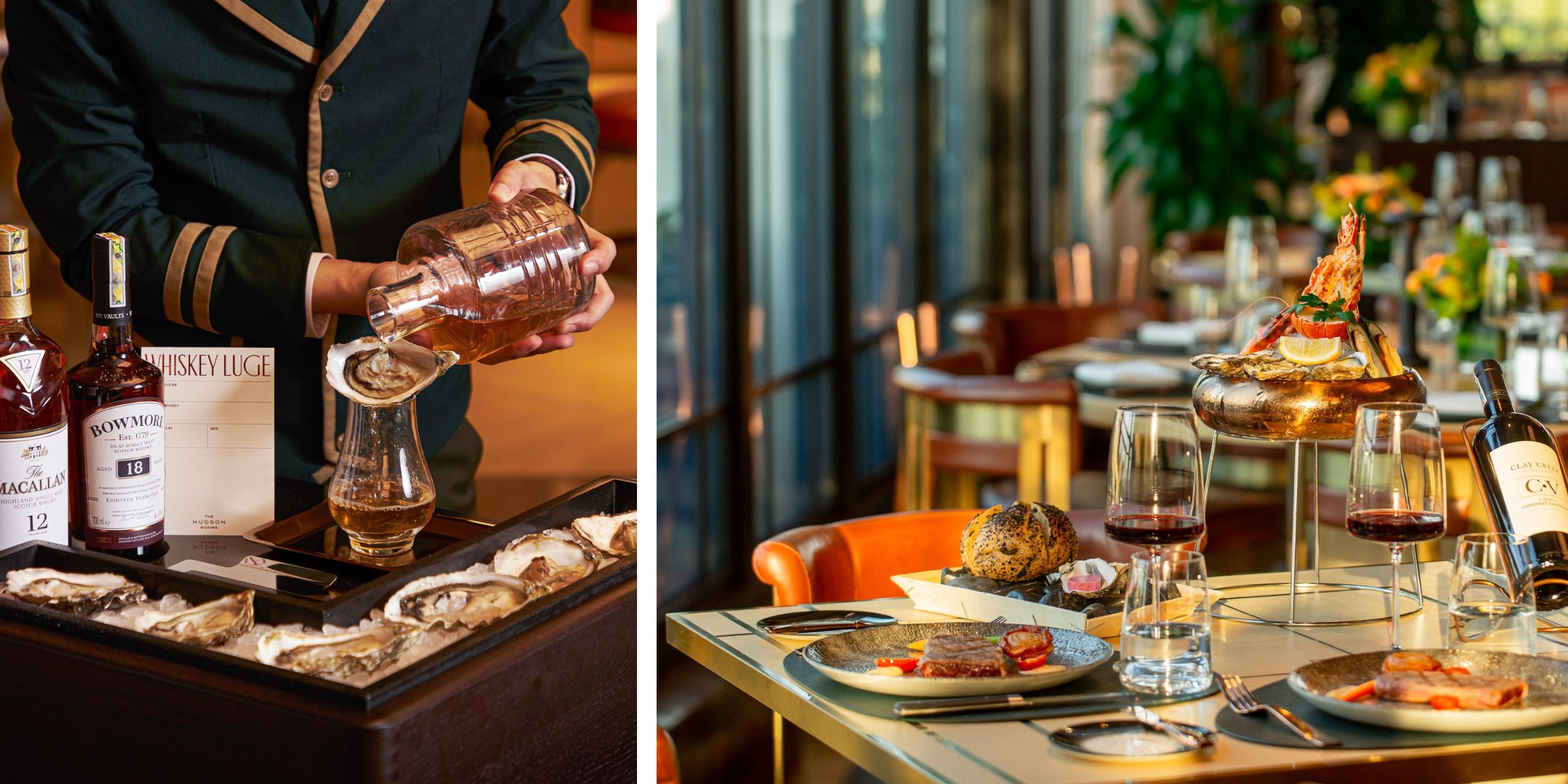 Occupying an expansive space on the rooftop level of the luxury boutique hotel – The Hudson Rooms restaurant and bar offers refined bistro dining with a North American-influenced menu – together with enticing cocktail experiences at the sleek marble counters of the Whisky & Oyster Raw Bar. Inspired by New York’s Grand Central station of the 1920s, the art deco-inspired design artfully combines contemporary sophistication with retro travel references. An adjoining intimate members’ lounge – replete with an exceptional selection of 200+ rare whisk(e)y labels featured in the Whiskey Bible – offers discrete privacy in the dark-timber-paneled space – accessed by invitation only through a hidden entrance.