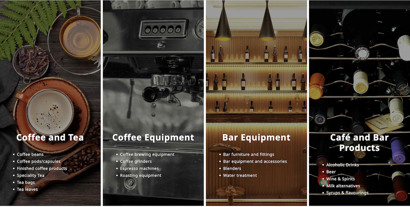 - Bar Equipment: Bar furniture and fittings, Bar equipment and accessories, Blenders, Water treatment