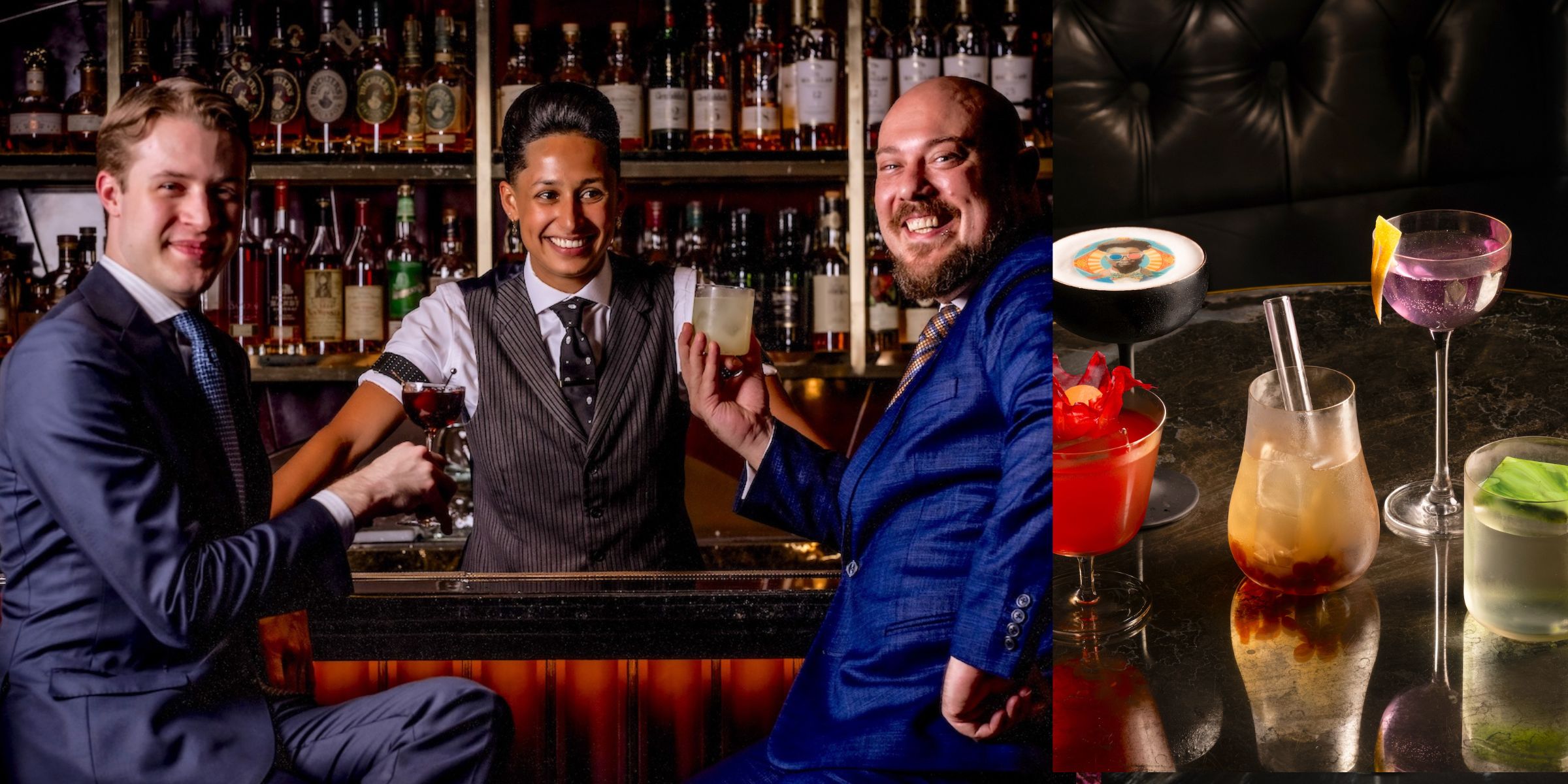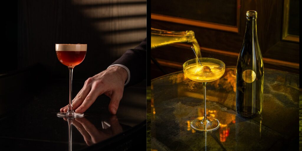 While New York’s Winter Countdown takes form in Minutes to Midnight. Arriving in a miniature champagne bottle and poured tableside into a martini glass, this sparkling drink blends Lillet Blanc, bergamot liqueur, champagne, and grape. A fizzy grape crowns the drink, signifying the Grapes of Luck tradition that captivated the world in 2024.