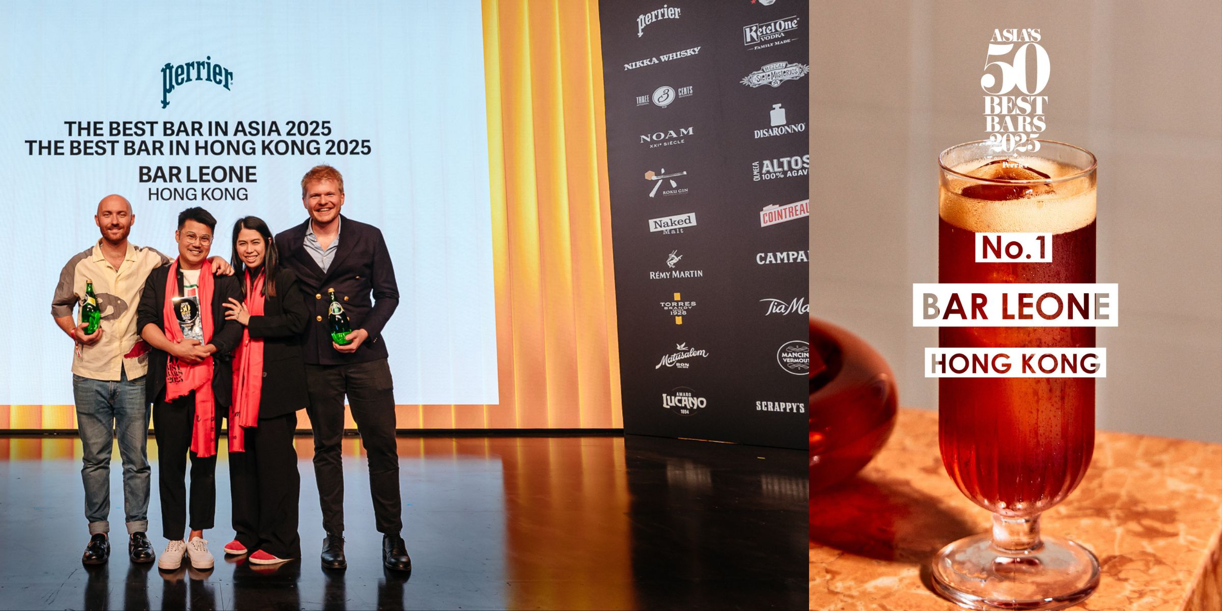 Bar Leone in Hong Kong has clinched the coveted title of The Best Bar in Asia and The Best Bar in Hong Kong, sponsored by Perrier, for the second year in a row, at the live awards ceremony for Asia’s 50 Best Bars 2025 held in Macau on July 15th. The ceremony was hosted in collaboration with destination partners Wynn Macau and Wynn Palace, and featured bars from 20 cities across Asia, including 20 new entries.