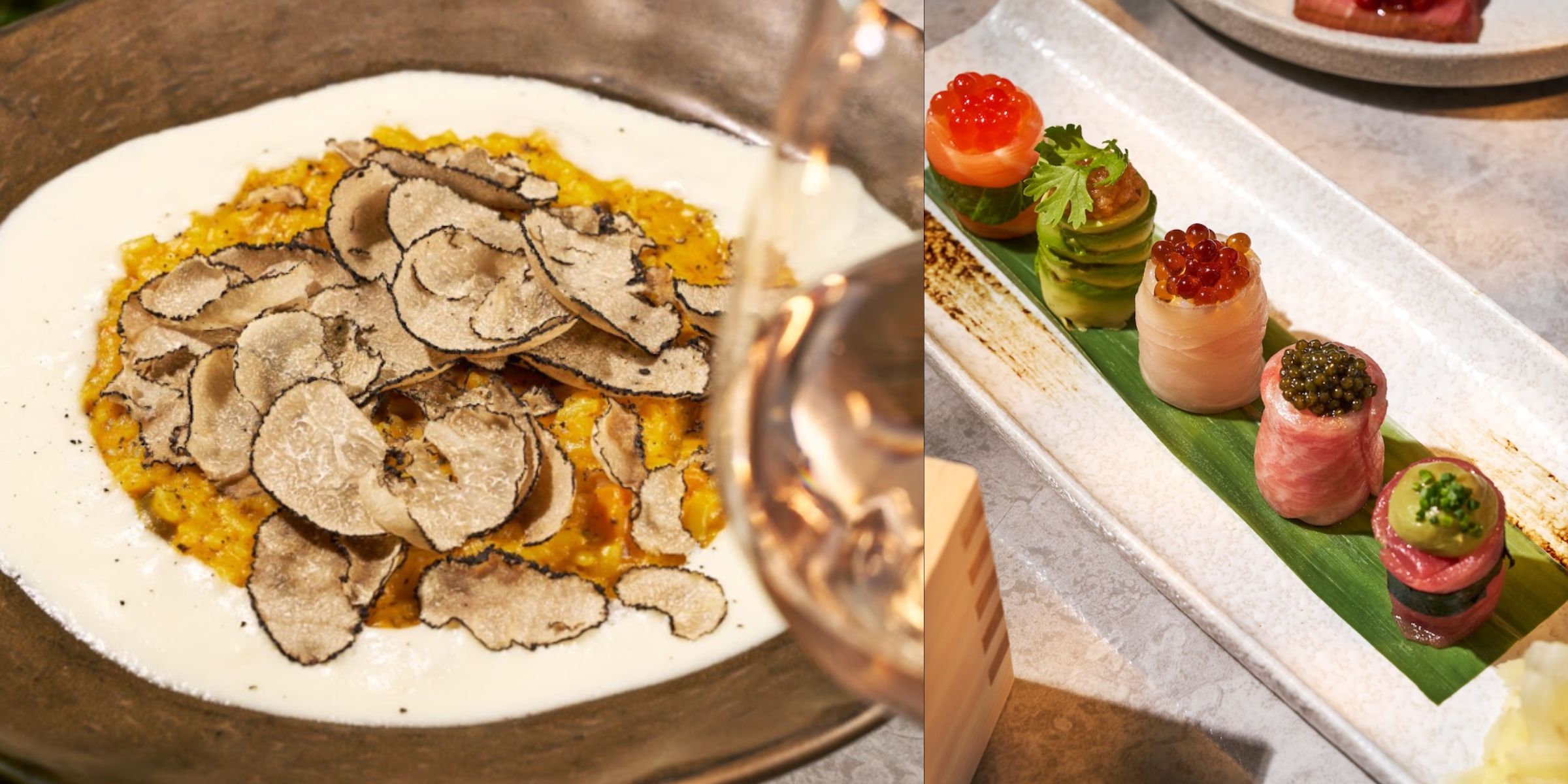 (L: Black Truffle Sushi Rice Okayu & R: Assorted Nigiri)